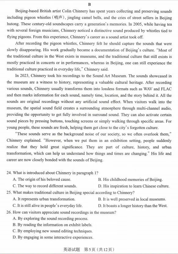 【原卷】2025高考英语真题试卷及答案(新高考一、二卷)含听力下载,pdf电子版,网盘免费分享