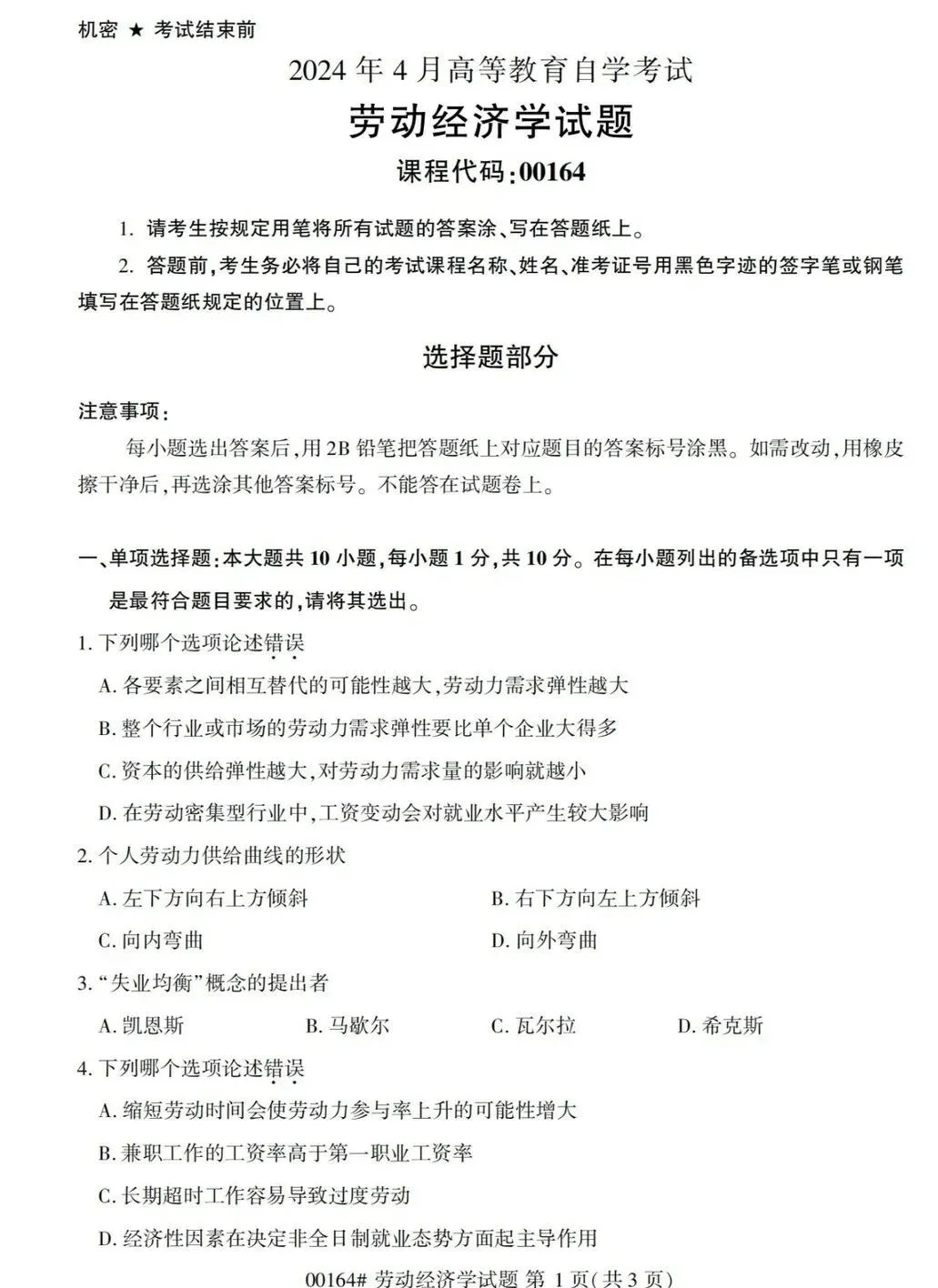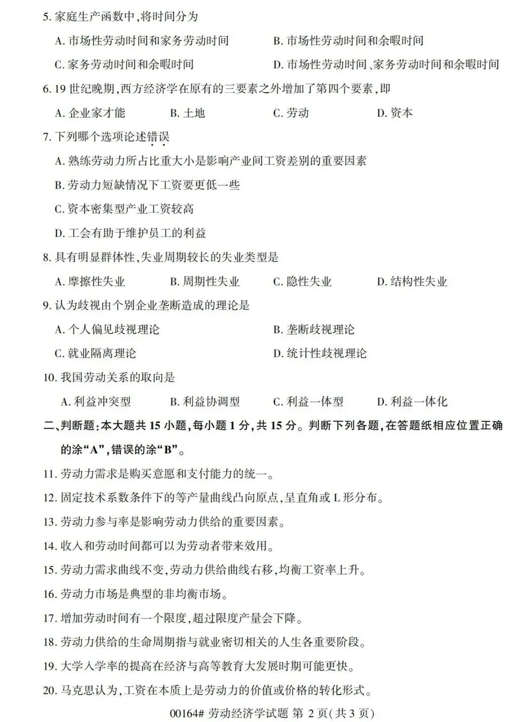 二、《劳动经济学》真题