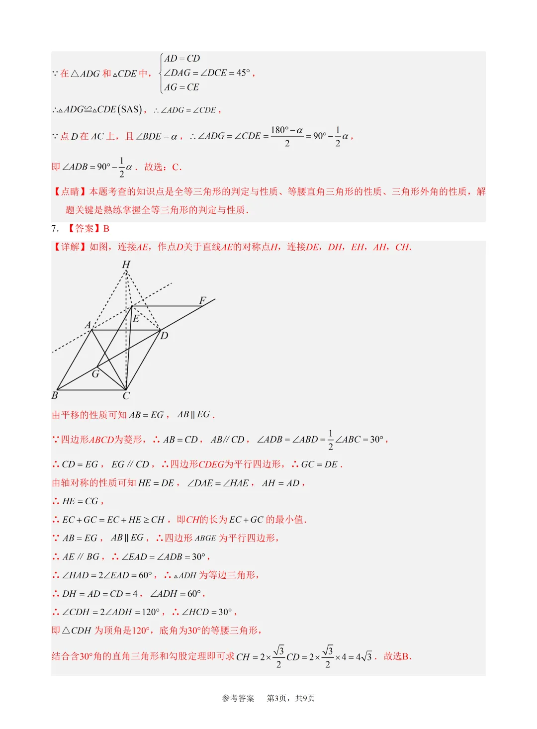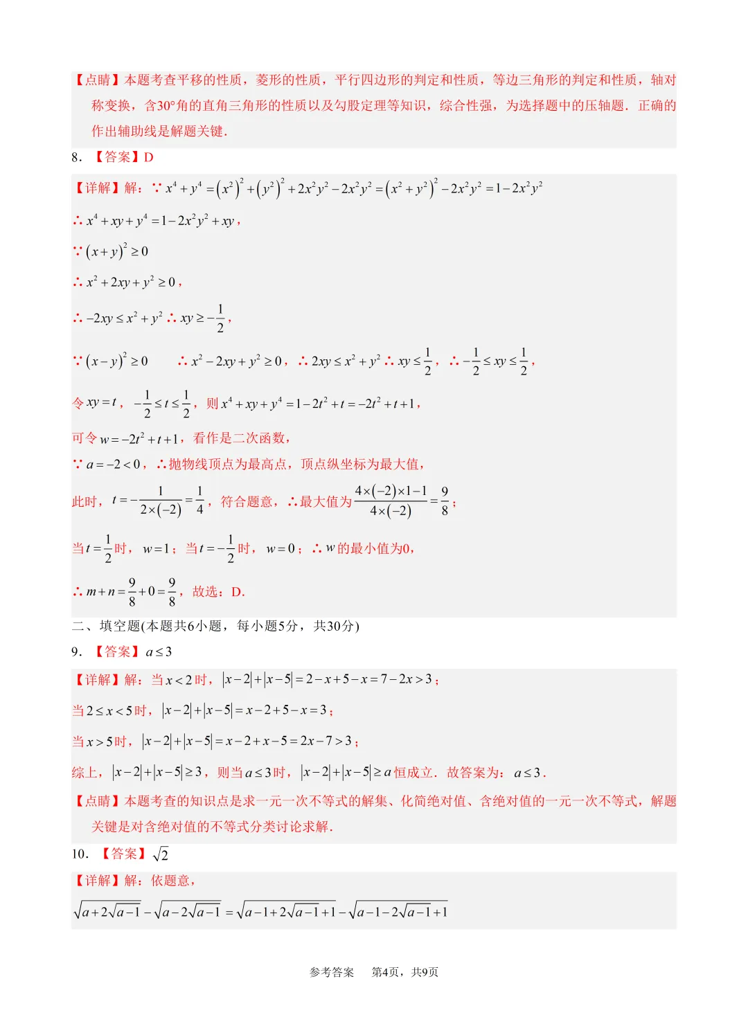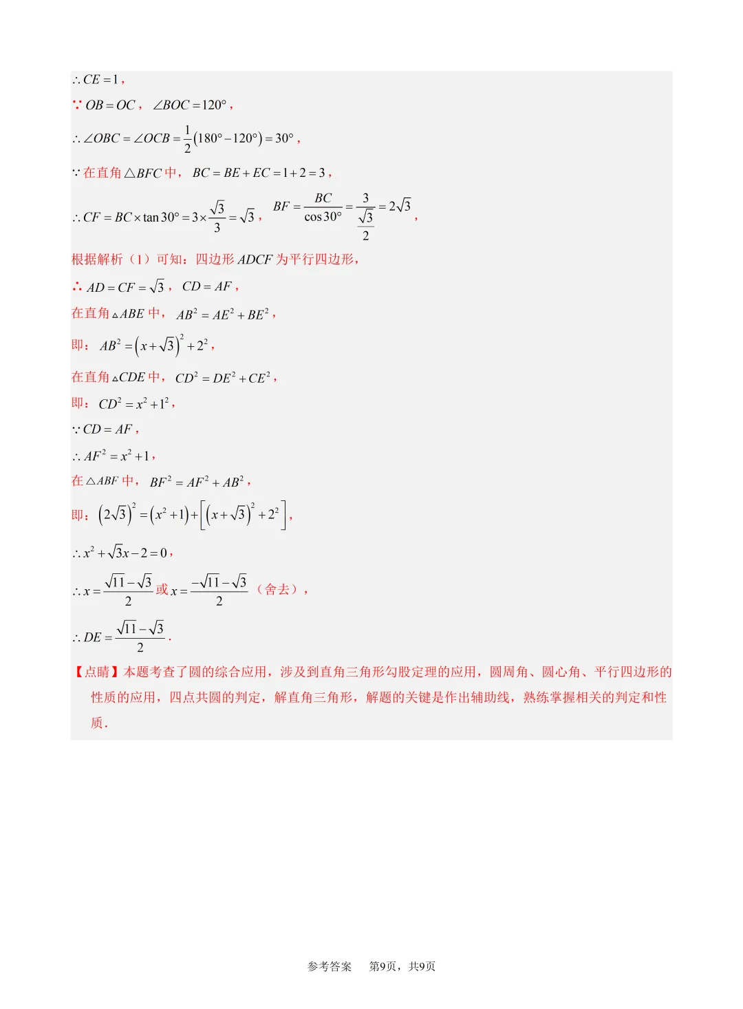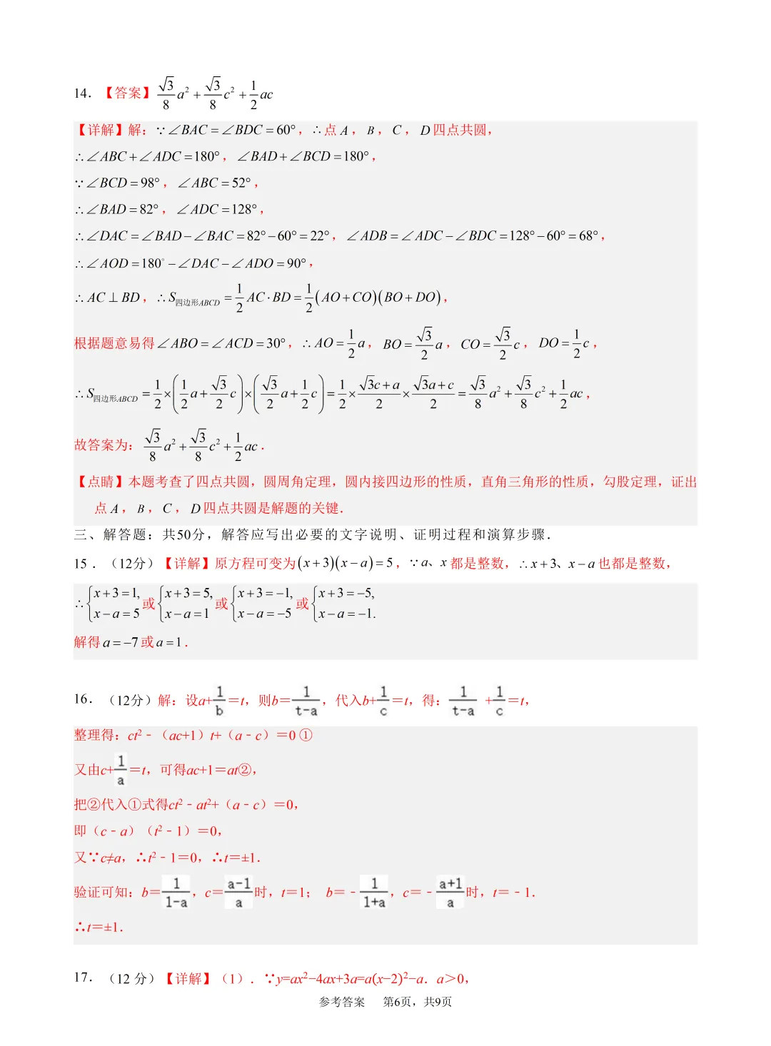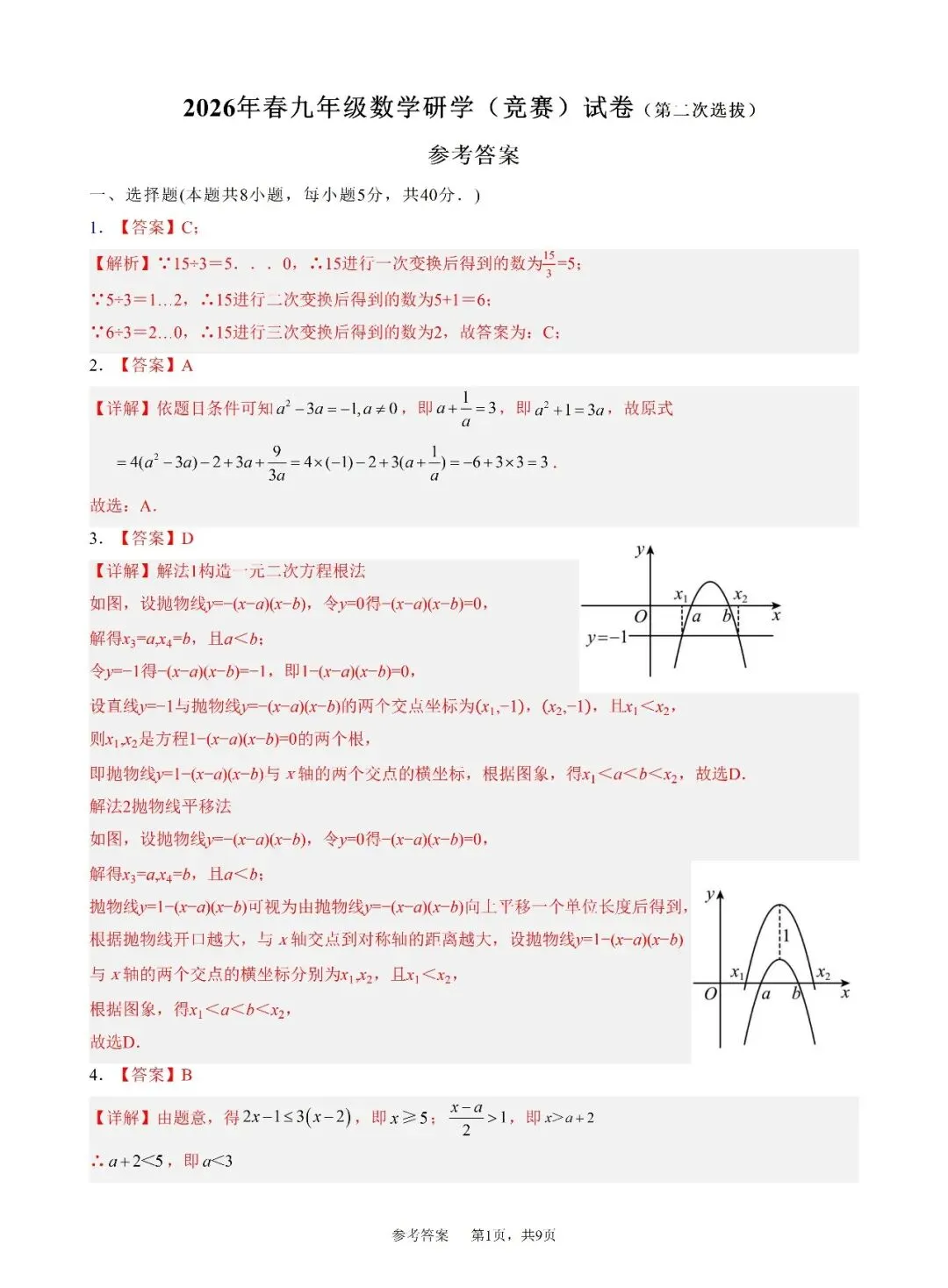 2026年春九年级数学竞赛(研学)试卷参考答案