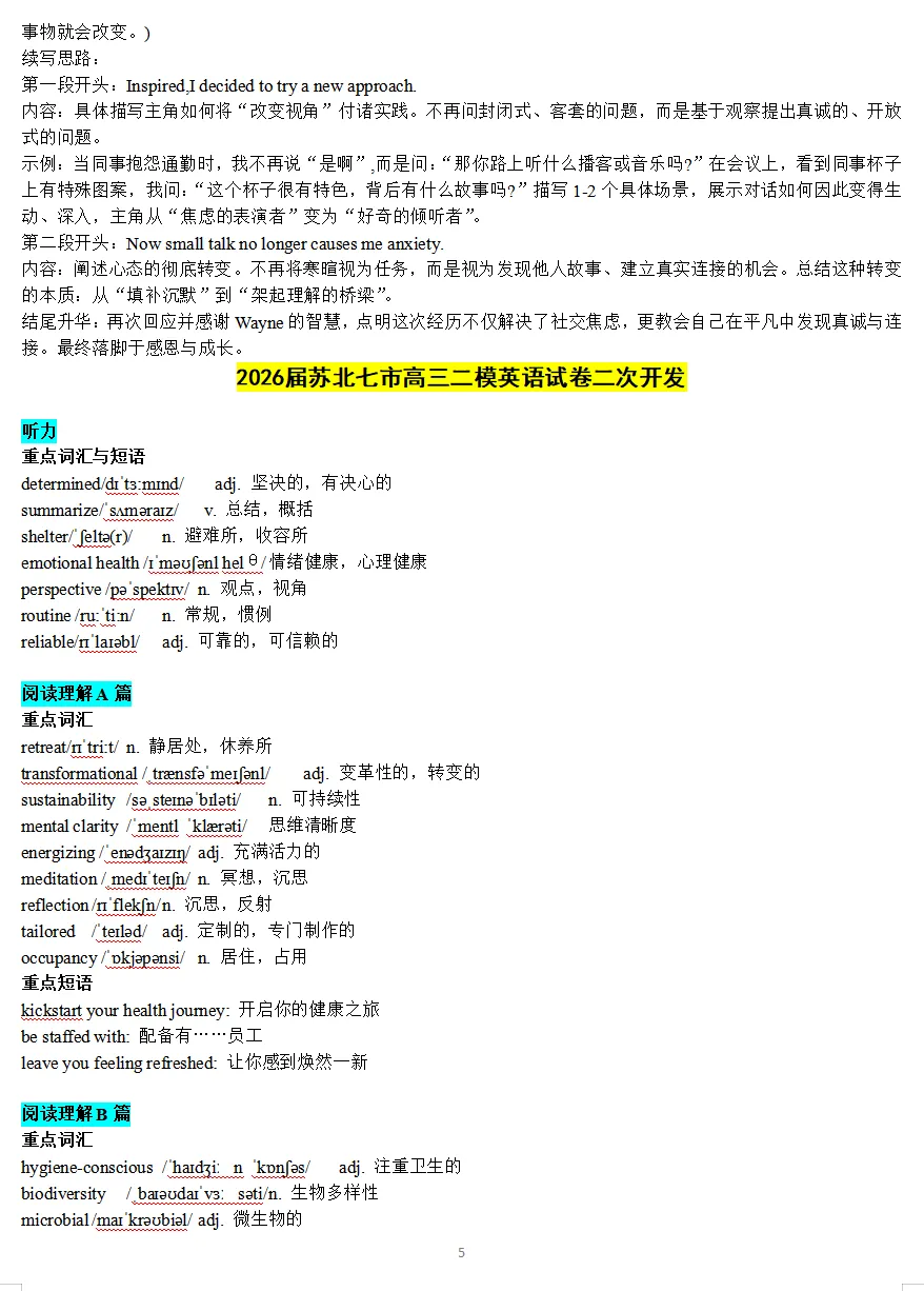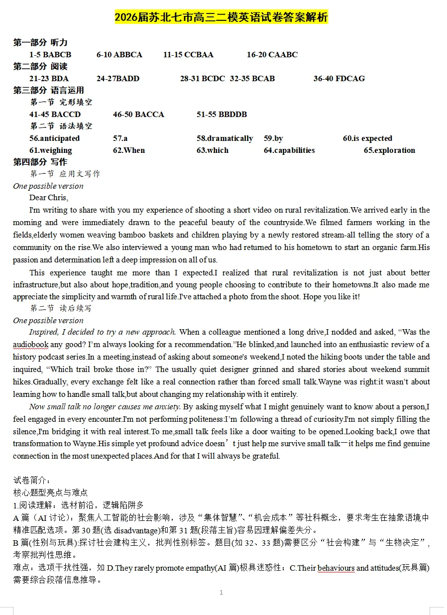 >【试卷推荐】苏北七市二模英语试卷 答案及二次开发