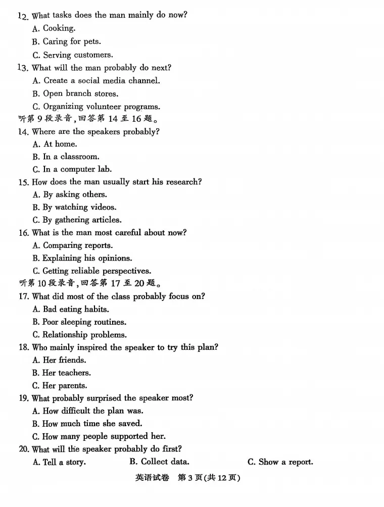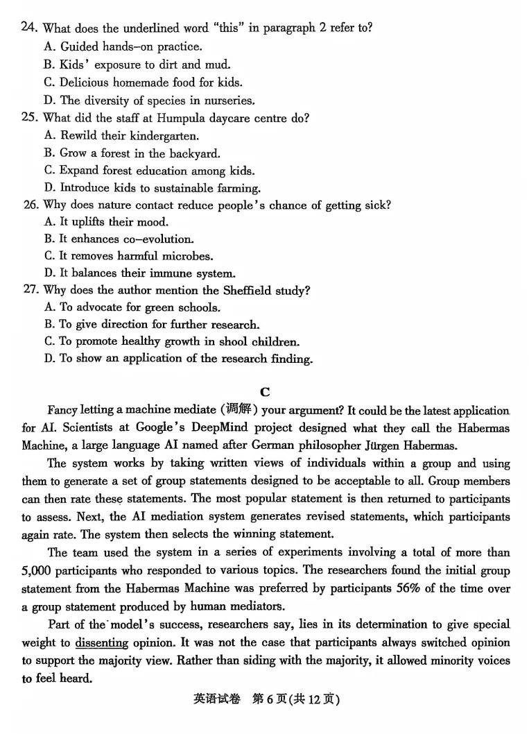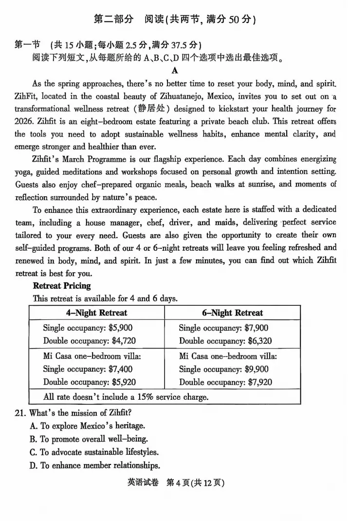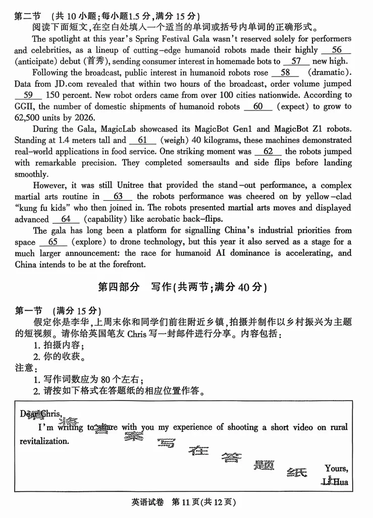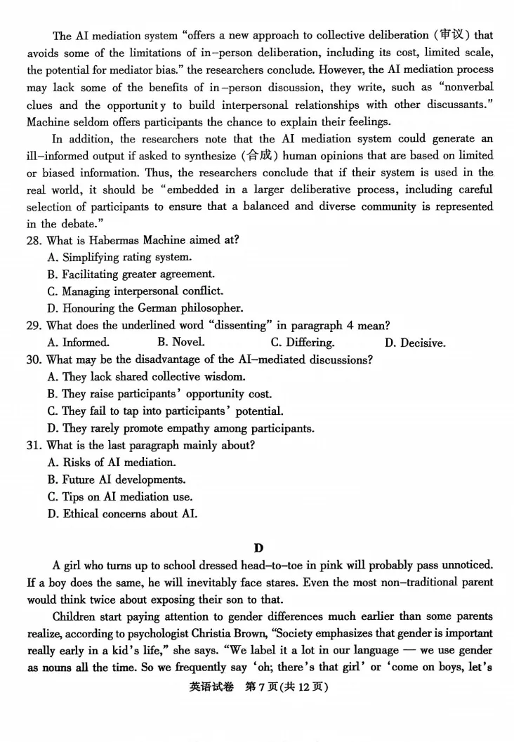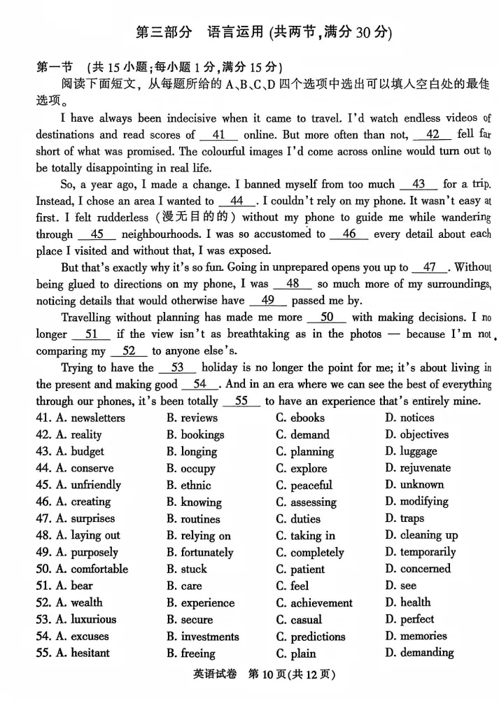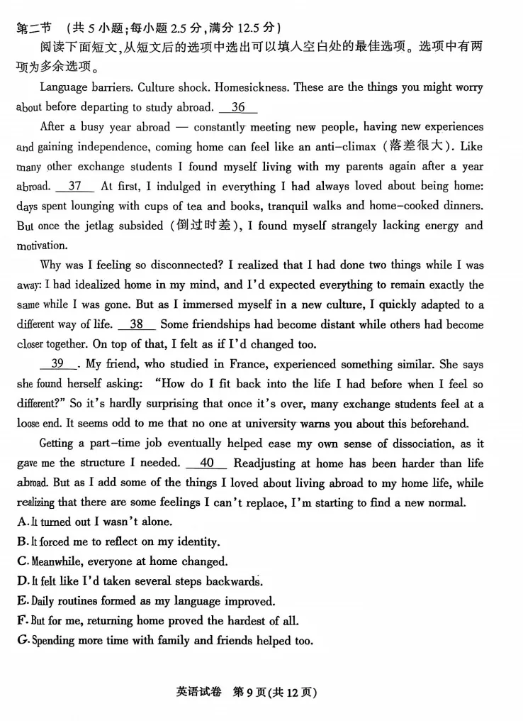 2025年湖北高考英语真题试卷及答案解析(PDF电子版免费分享)湖北高考真题及答案解析