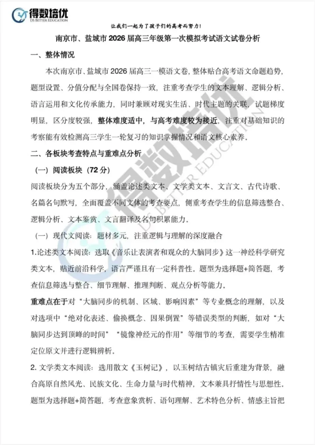 2026届南京市、盐城市一模语文试卷 | pdf下载(另赠数学卷、化学卷)