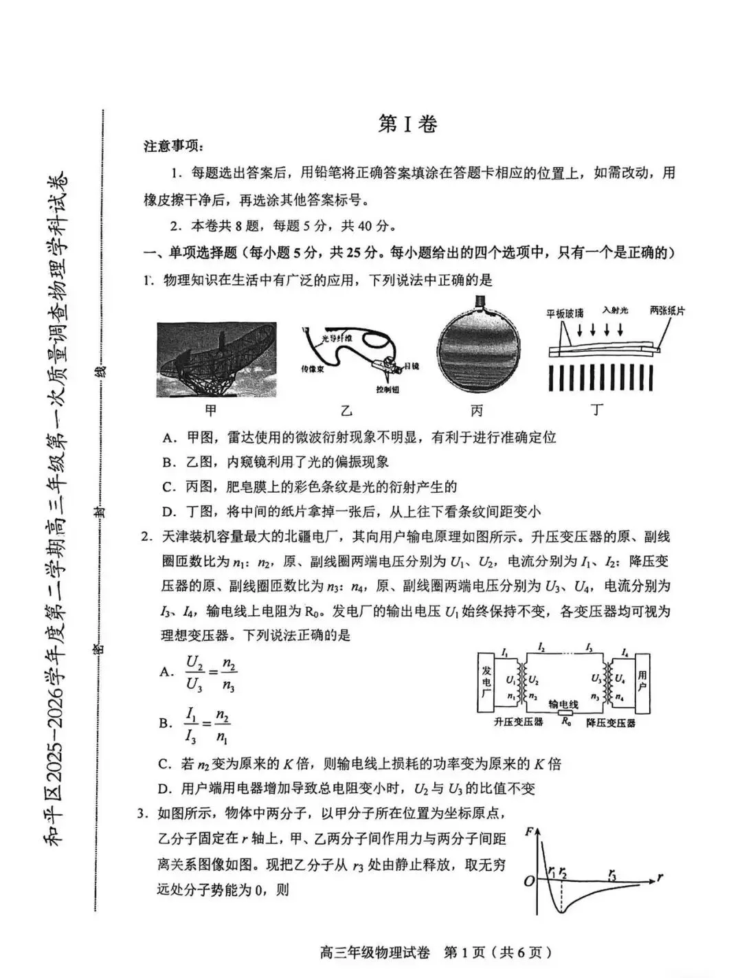 2026年和平区物理高三一模试卷及答案