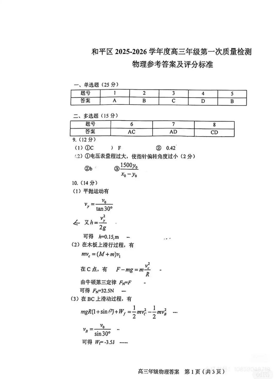 >2026年和平区物理高三一模试卷及答案
