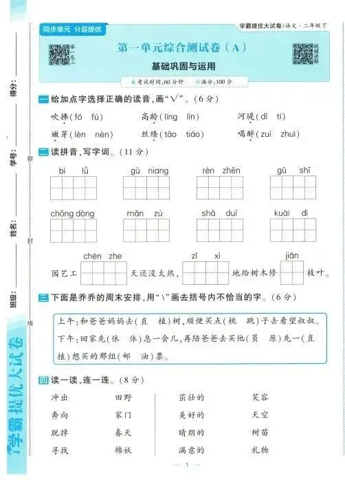 统编版语文2-6年级下册《学霸提优大试卷》,有单元+月考+期中+期末卷,建议各位家长领取打印给孩子学习!
