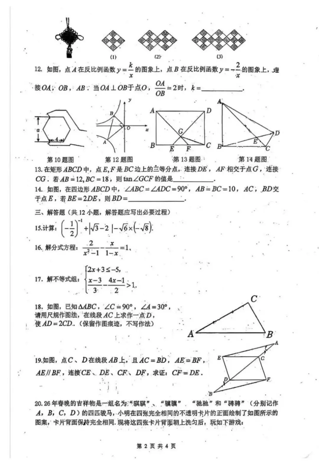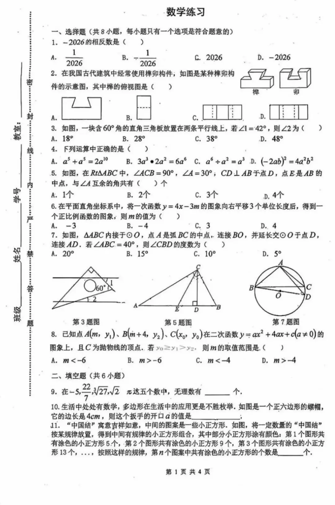 2026年江苏宜兴中考一模数学试卷(2026.3)