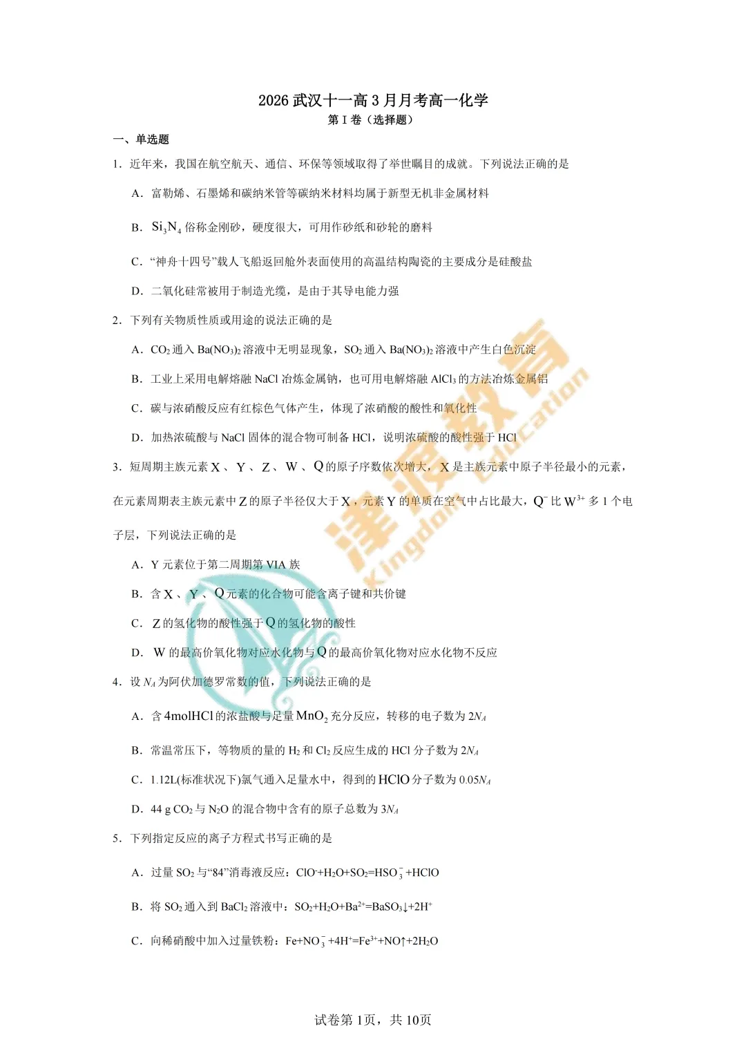【试卷速递】广西南宁市2026届普通高中毕业班第二次适应性测试化学(可下载)