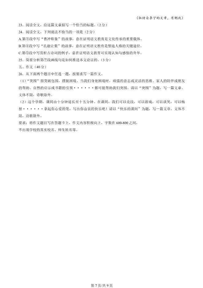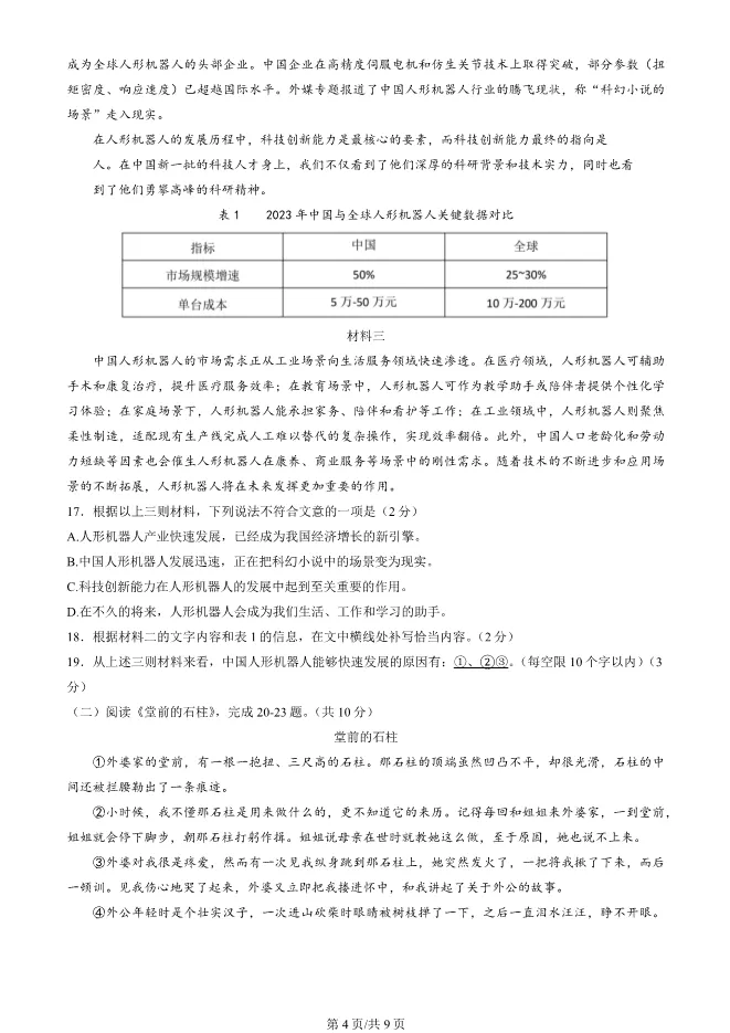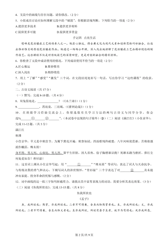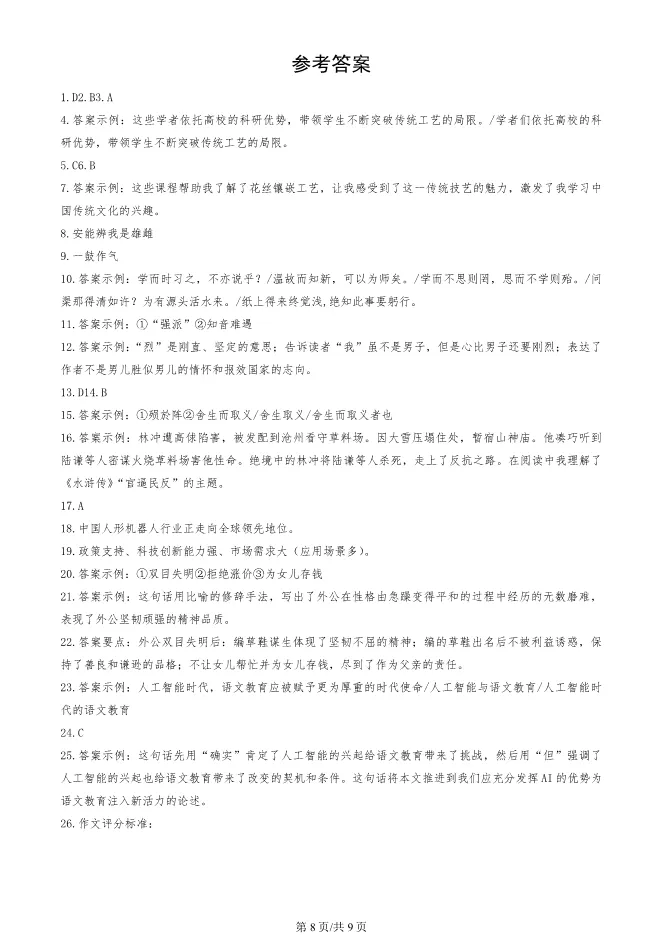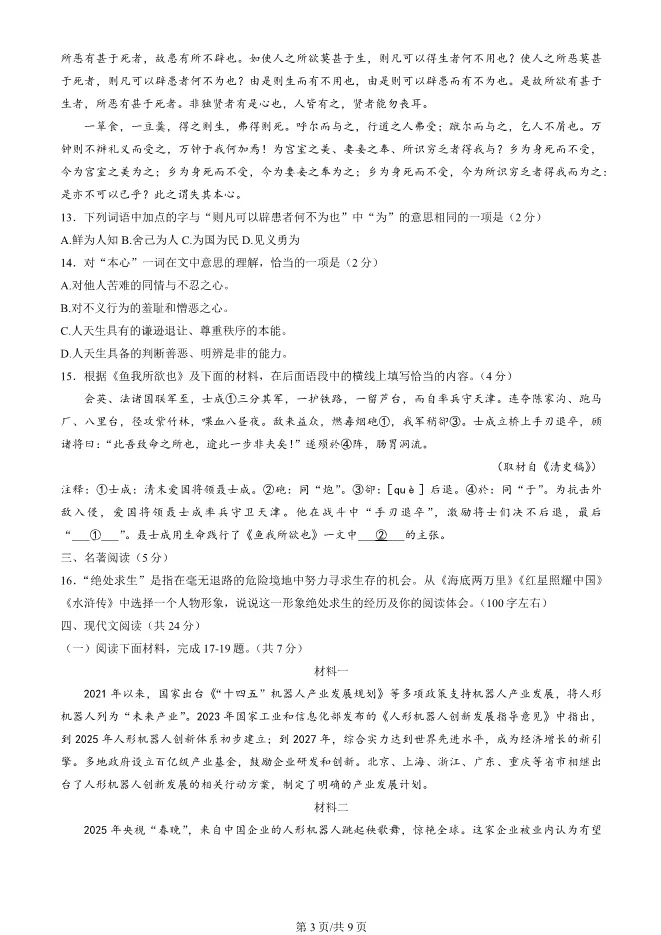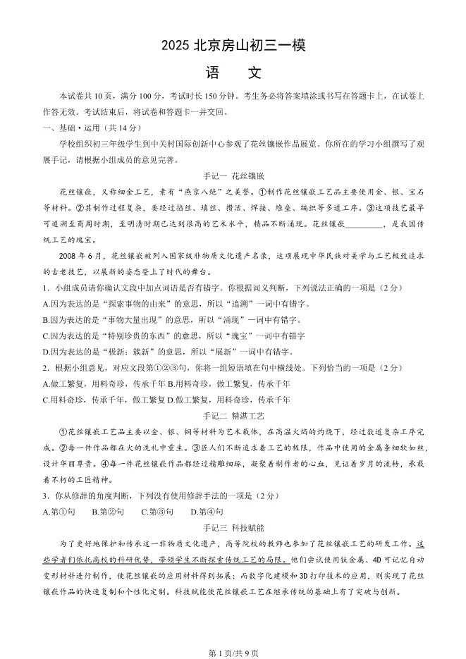 2025北京房山初三一模语文试卷(有答案) ;word版本可下载使用;