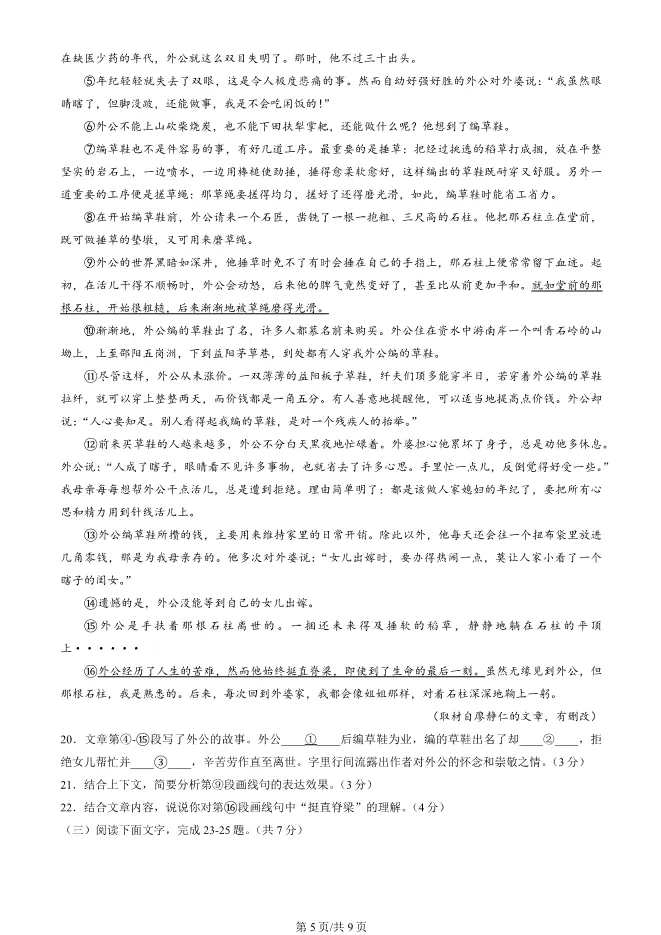 2025北京房山初三一模语文试卷(有答案)