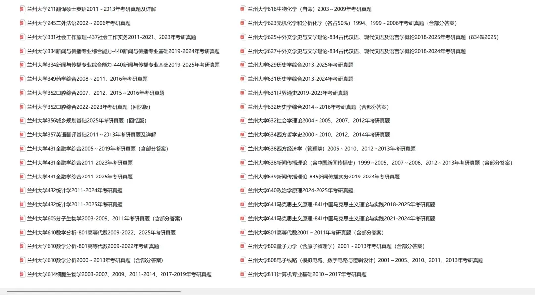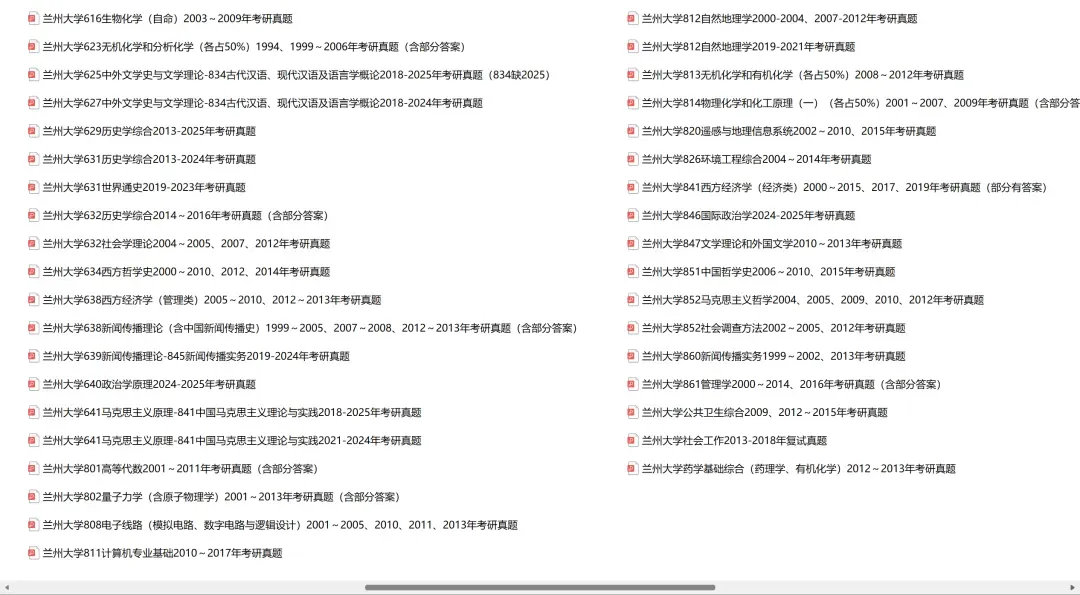 兰州大学610数学分析-801高等代数2009-2022、2025年考研真题