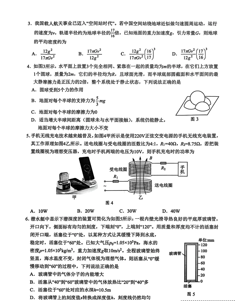 民大附中2025年4月期中考试物理试卷