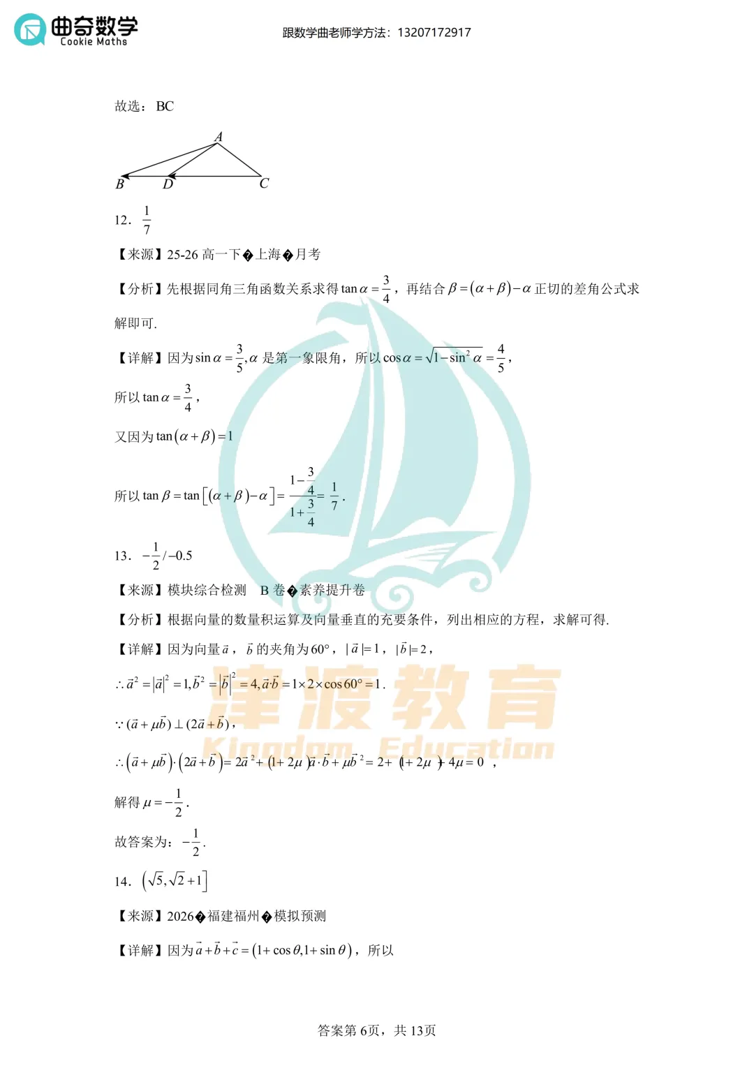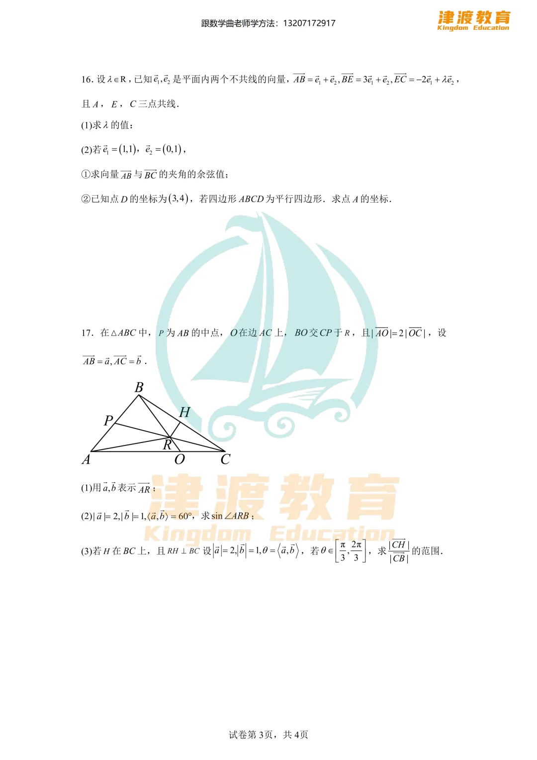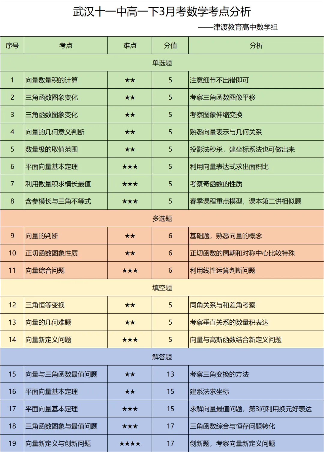 向量板块内容考察的中规中矩,除了19题新定义比较难意外,都是常规考法。部分同学大题花很长时间没做出来,属于平面向量基本定理的掌握不熟,要多练习,期中必有一道向量大题。部分题目利用二级结论,很多内容都和春季内容重叠,月考成绩不理想一定及时调整。