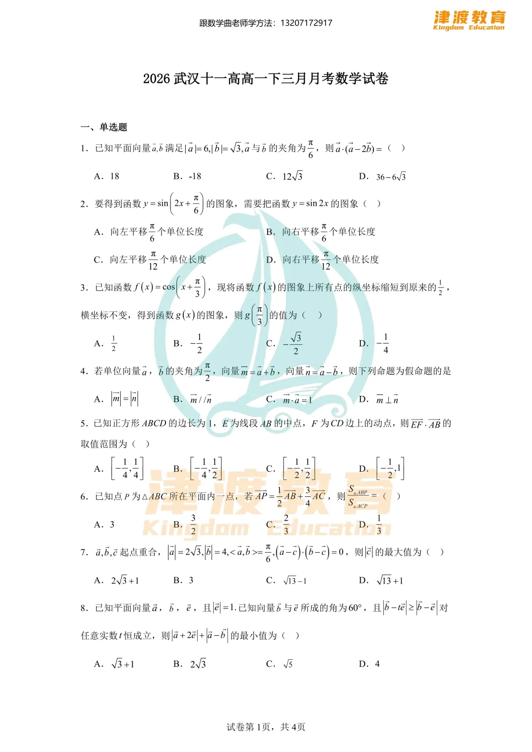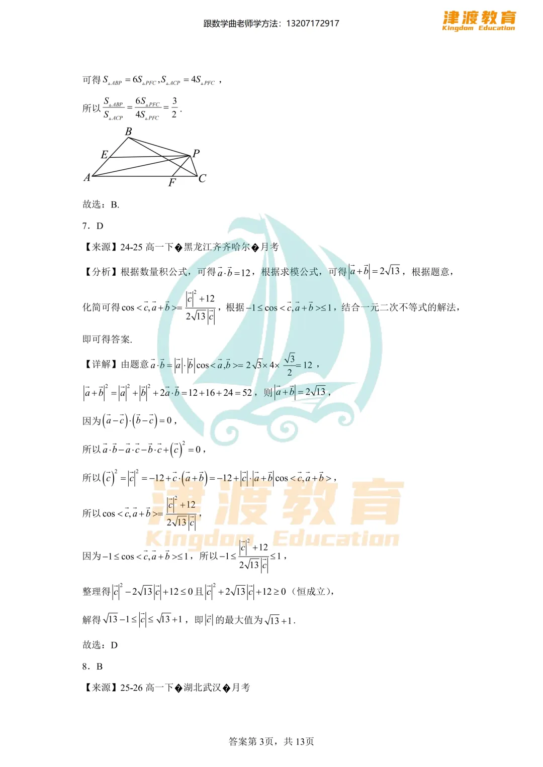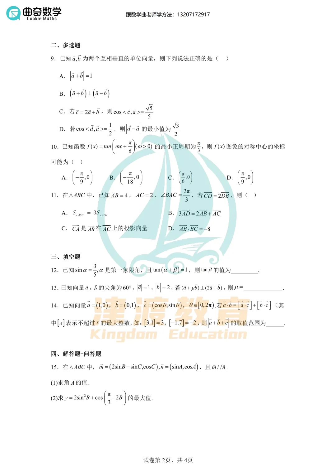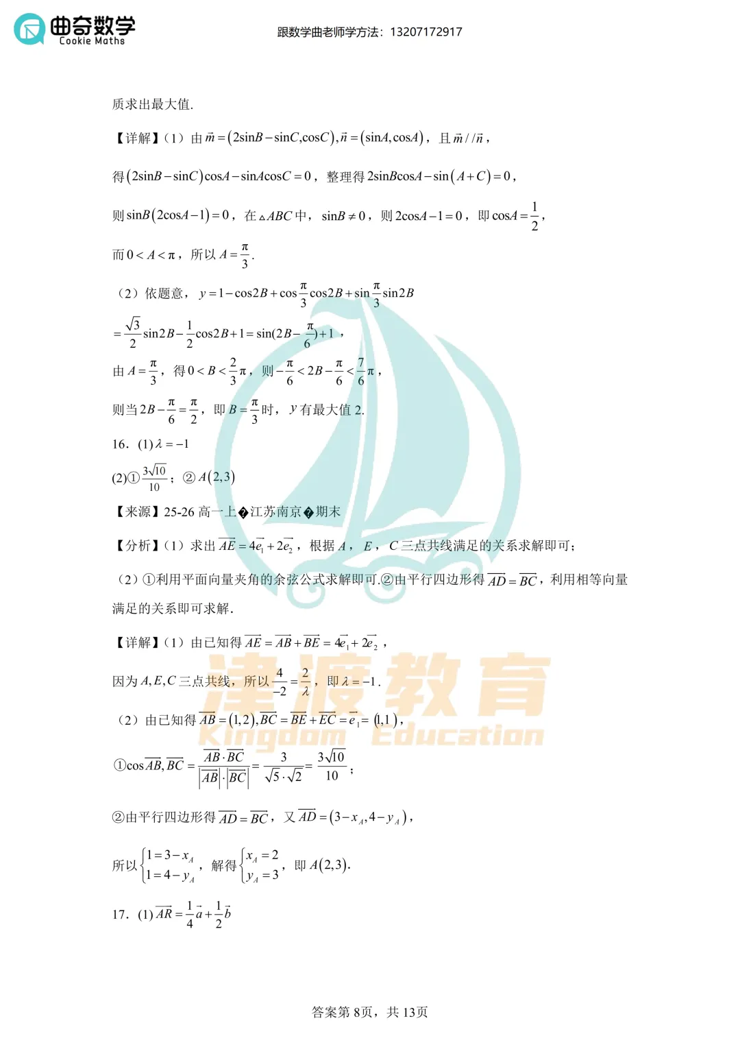 向量板块内容考察的中规中矩,除了19题新定义比较难意外,都是常规考法。部分同学大题花很长时间没做出来,属于平面向量基本定理的掌握不熟,要多练习,期中必有一道向量大题。部分题目利用二级结论,很多内容都和春季内容重叠,月考成绩不理想一定及时调整。