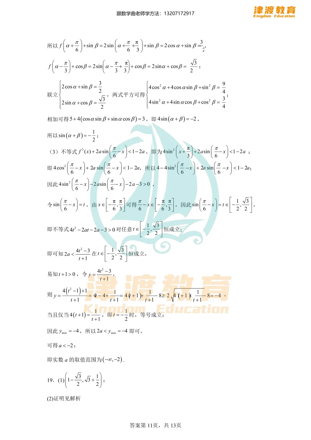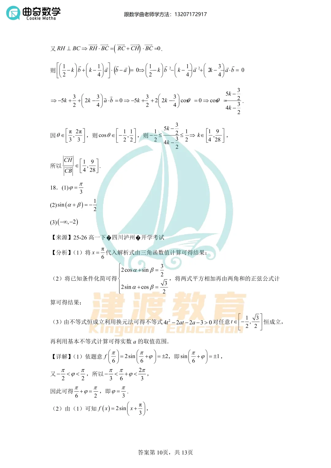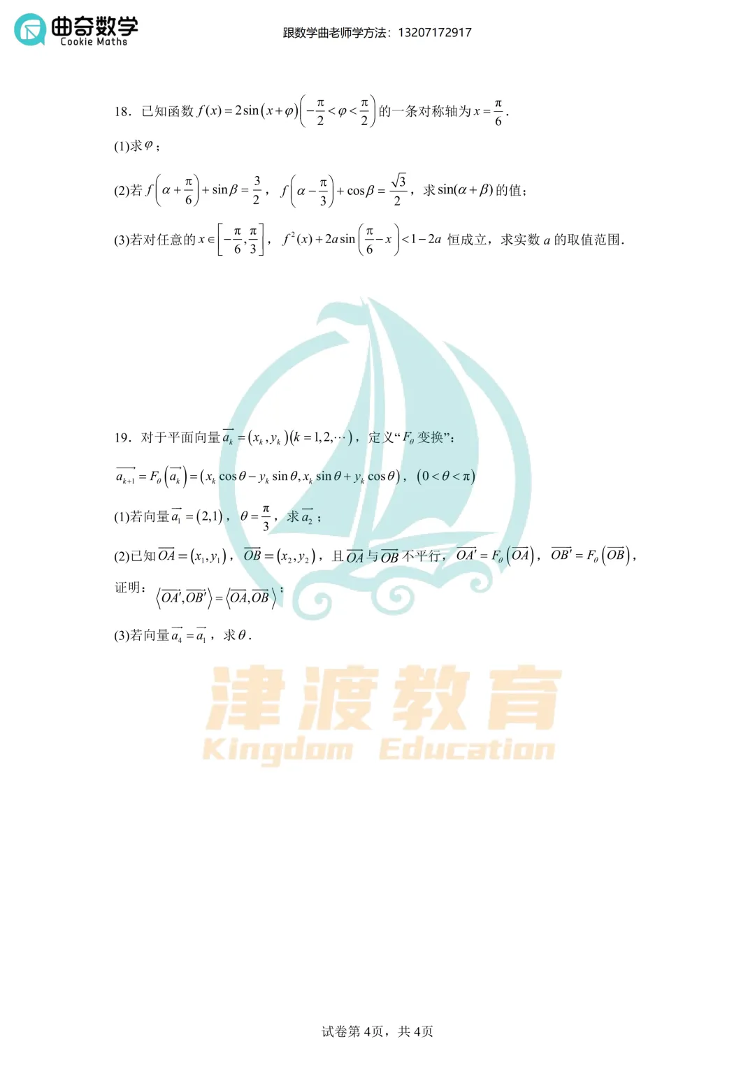 整体试卷整体难度适中,解答压轴题创新题难度比较大,考察上学期三角函数板块内容较多,如果没复习上学期的内容,考试成绩会有些波动。后面接下来正余弦定理与立体几何都会考察三角恒等变换与图象最值问题,一定要及时巩固,不能遍学遍忘。