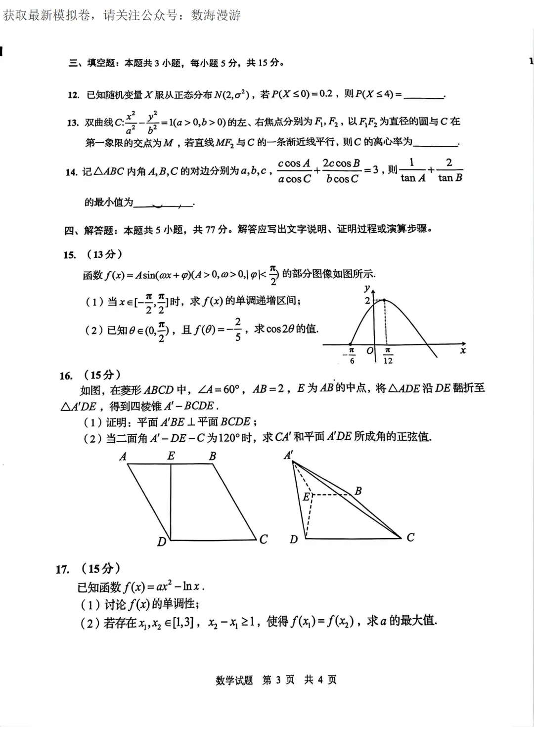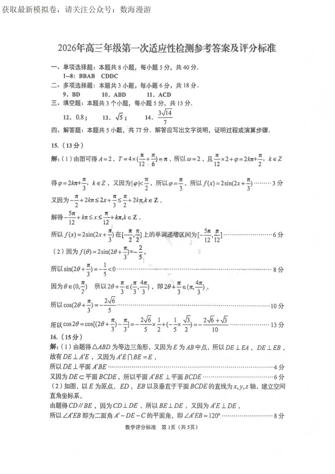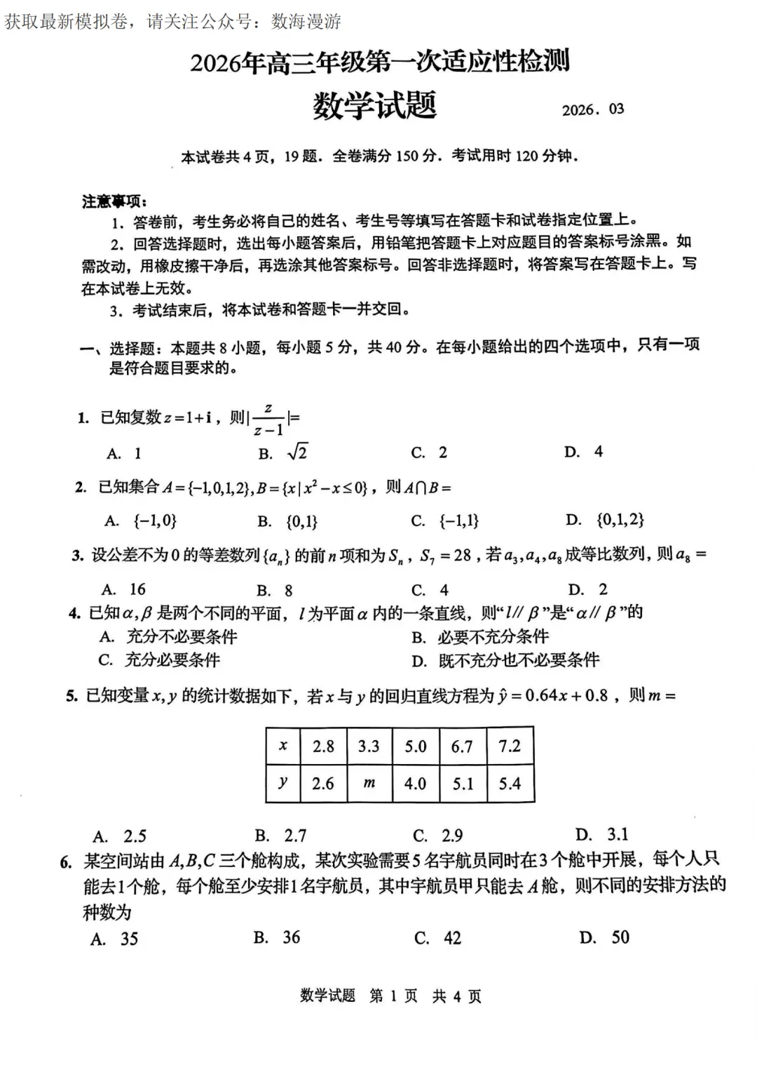 湖南的试卷值得期待,湖南新高考教学教研联盟2026届高三下学期3月第一次联考数学答案