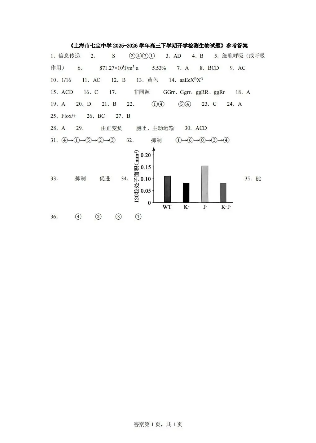 《试卷分享》高三下学期生物测试卷