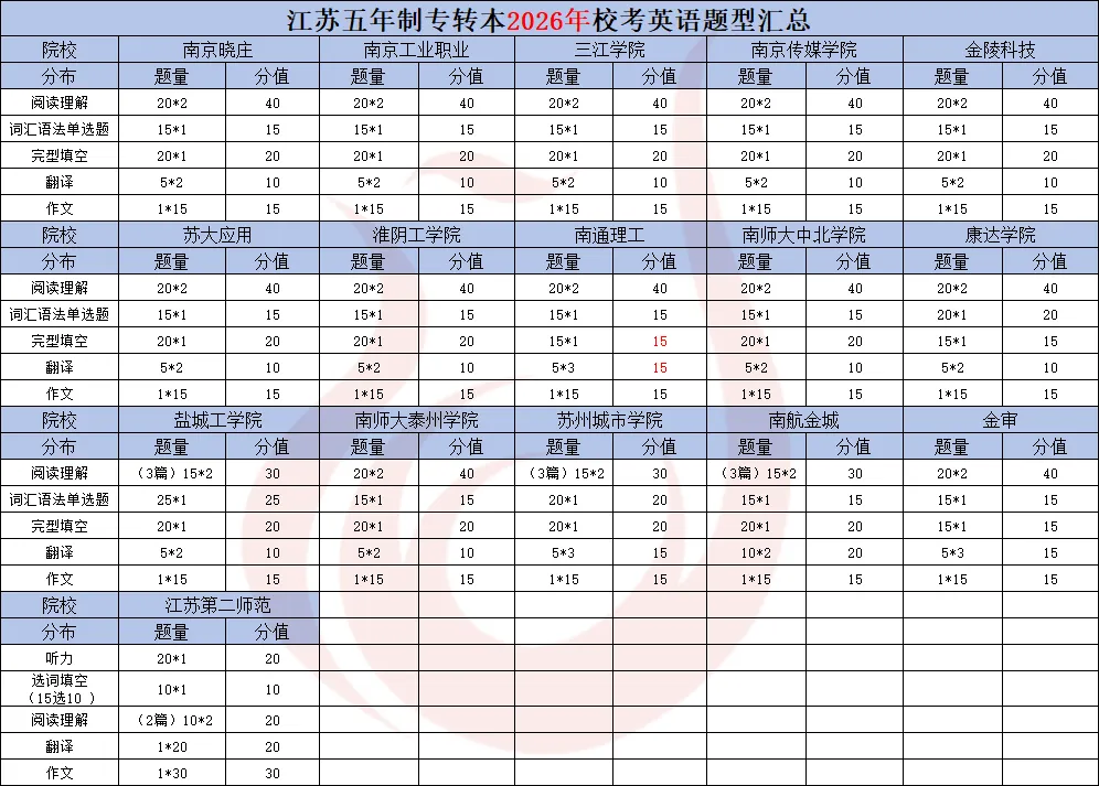 总结:从今年考生的整体反馈来看,2026 年五年制专转本校考英语试卷整体难度较去年有所下降,但苏城院校的考试难度依旧偏高。