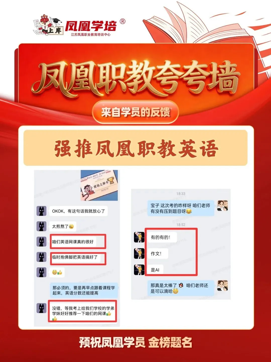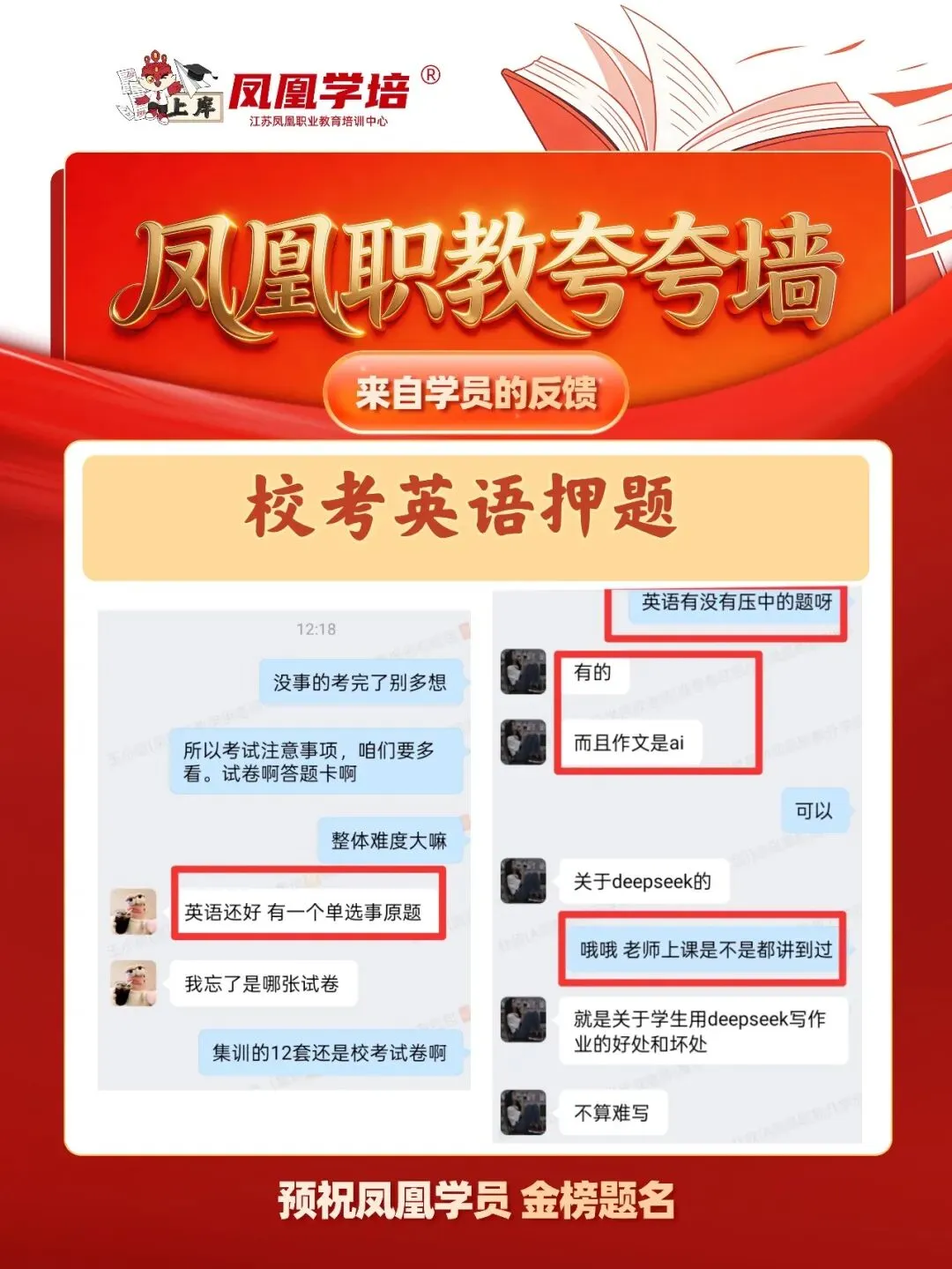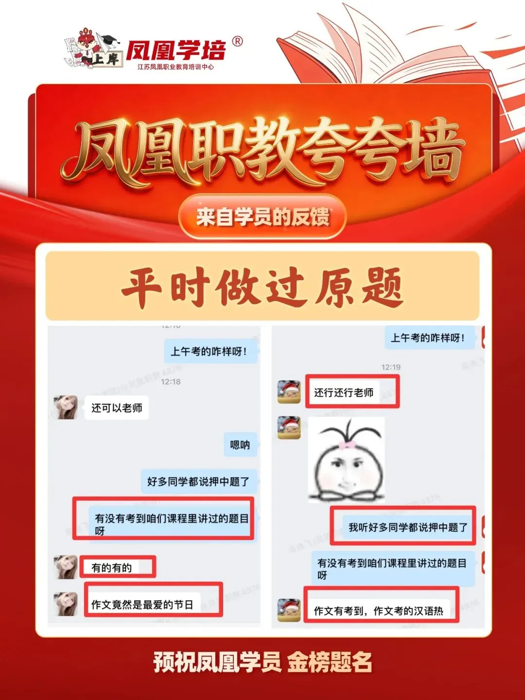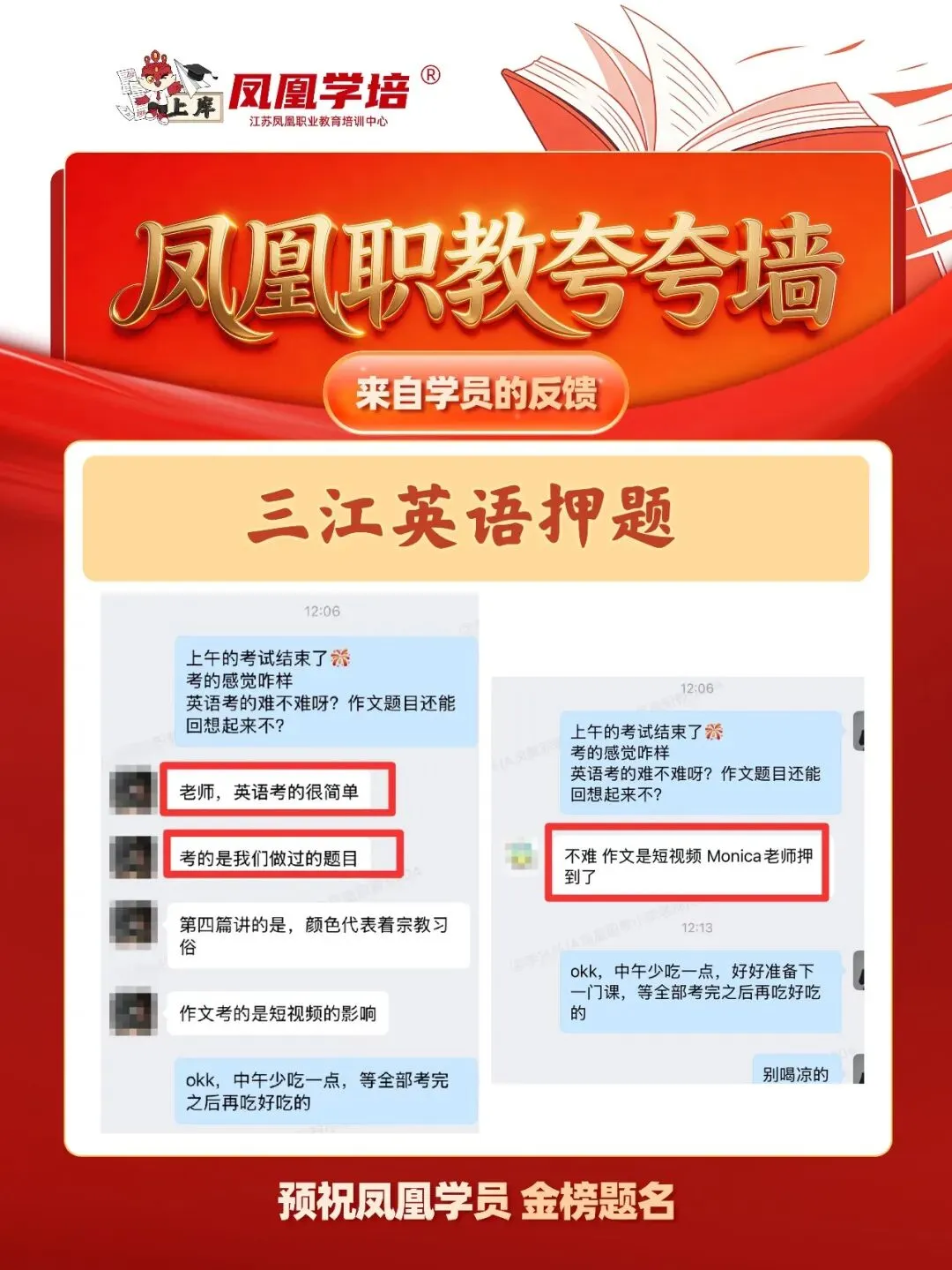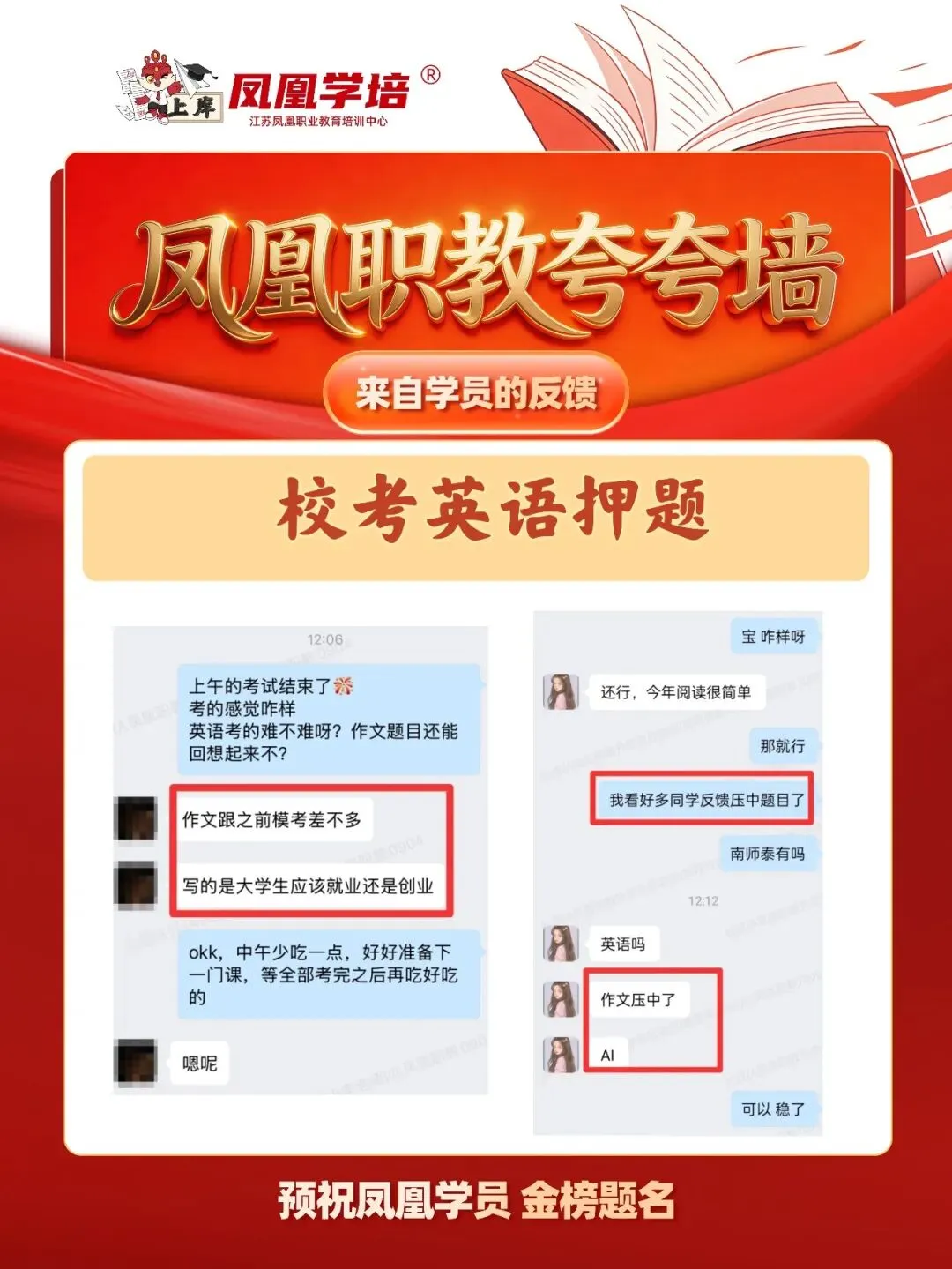 The importance of time management汉语热潮对中国的积极影响?作为大学生我们可以做什么My favourite festival/ your favourite festivalShould College Graduates Start Their OwnBusinessMy view AI /the view of AI/my view on AI/ in my view of AI小编也整理了2026年凤凰职教的作文押题情况,一起来看看吧: