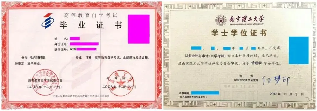 毕业证书:自考本科文凭