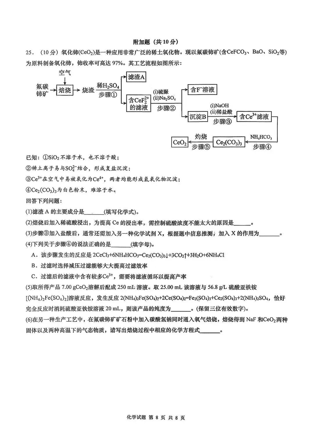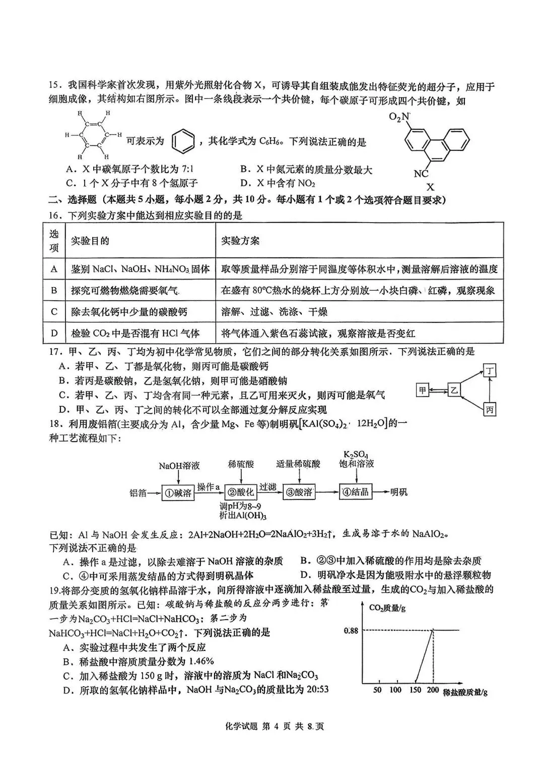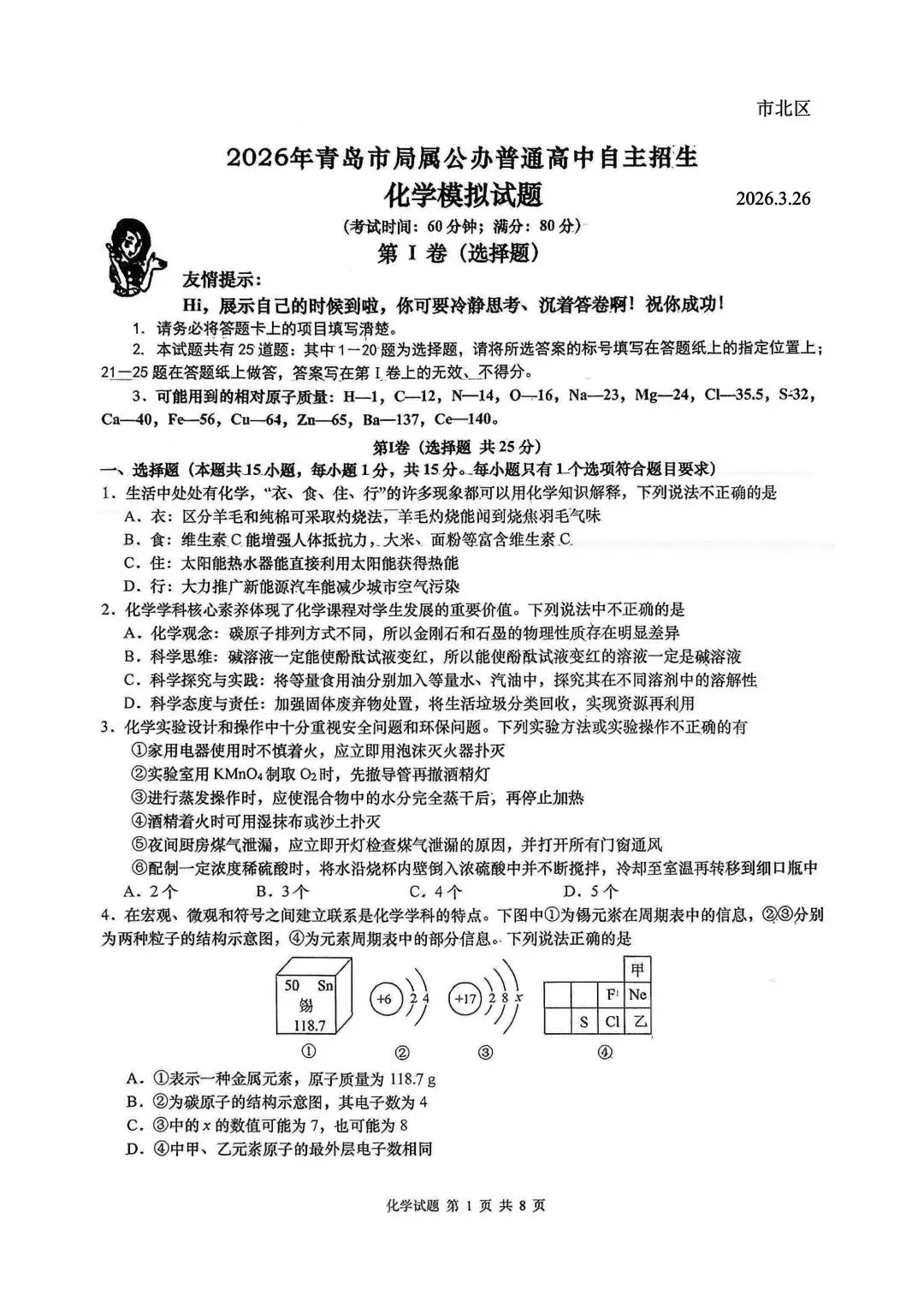 2026年市北区化学自招模拟试卷及答案(2026.3.26)