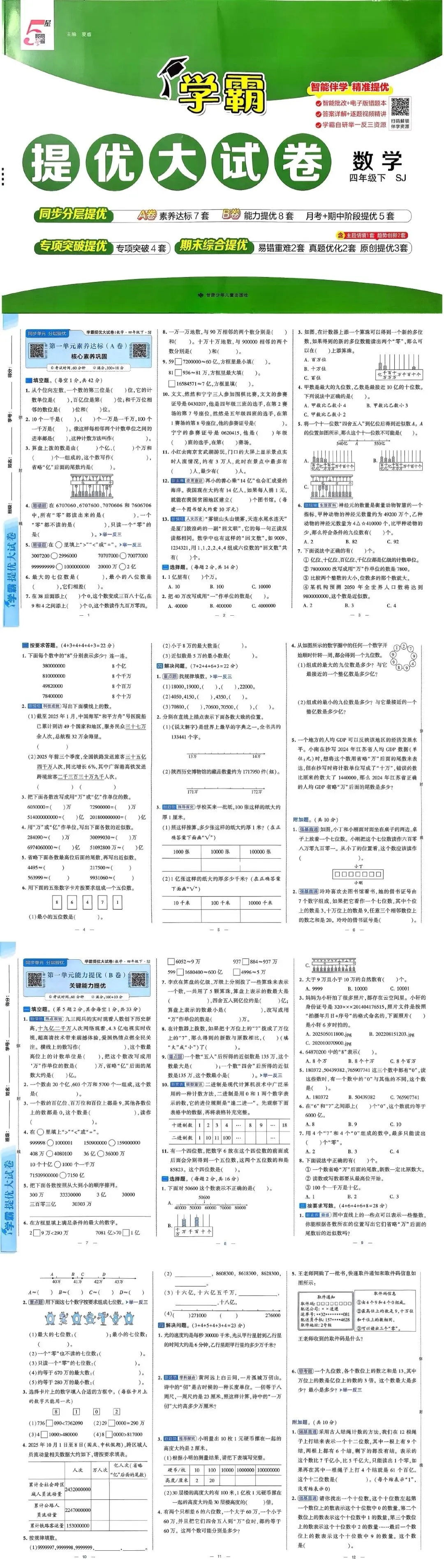 >苏教数学四年级下册《学霸提优大试卷》(可下载)