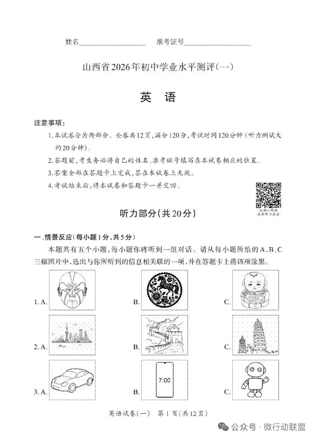 >【英语试卷+听力】晋一测评·山西省2026年初中学业水平测评一英语
