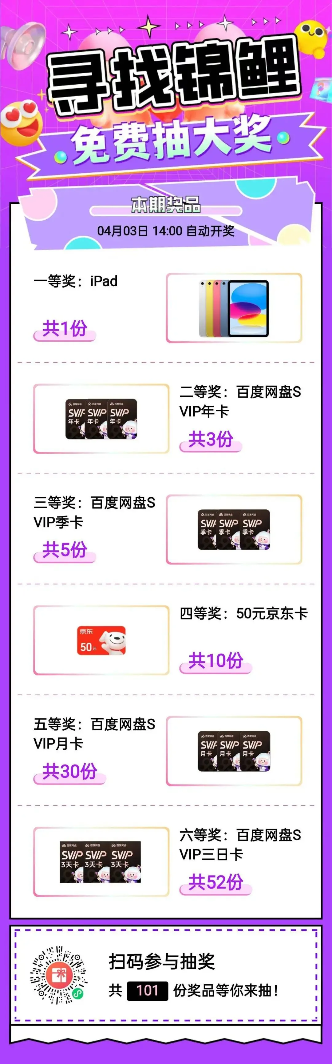 百度网盘免费送500G空间【必须进群才可以】抽年卡、季卡、月卡等,来50位朋友我也冲一下前三名年卡,长按识别二维码2026.3.13