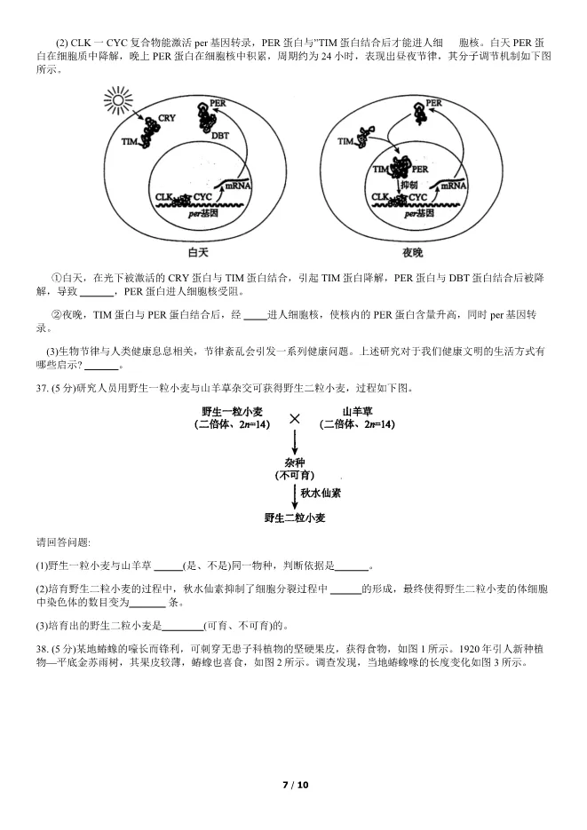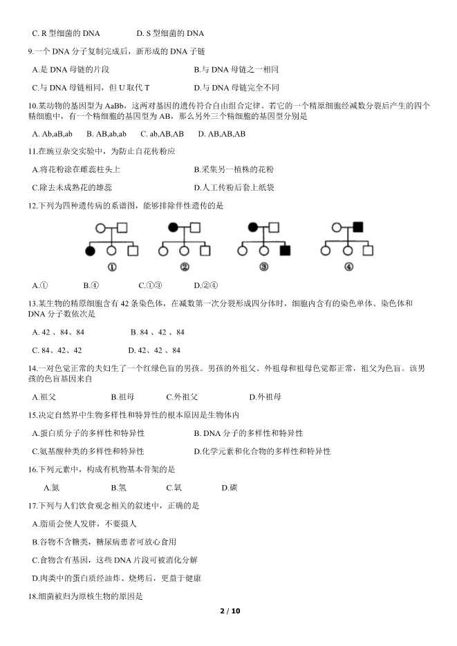 2019北京高中合格考生物试卷生物会考真题(第一次有答案)【可下载】