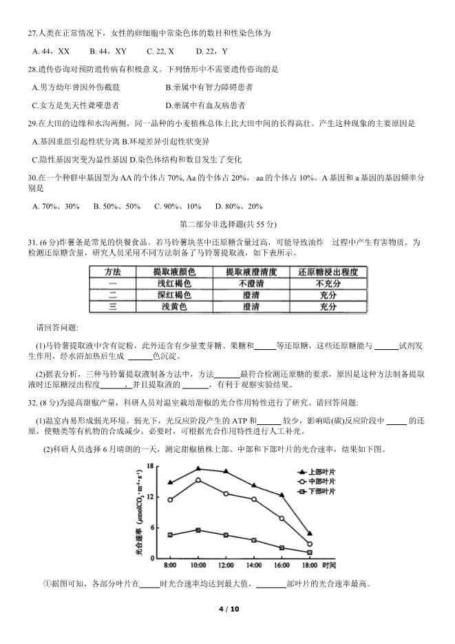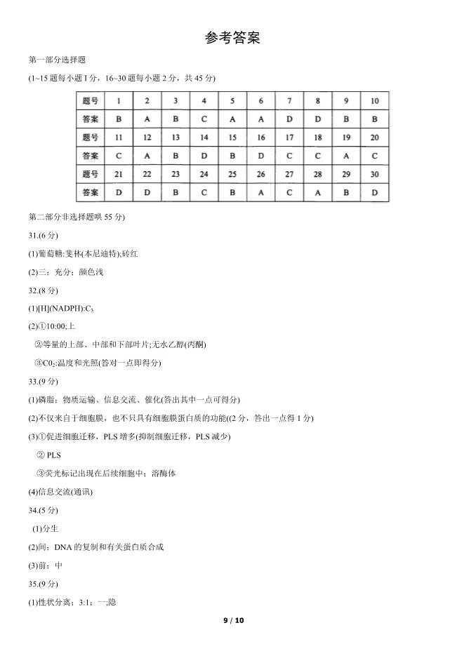 2019北京高中合格考生物试卷生物会考真题(第一次有答案) 电子版试卷获取,后台回复:试卷