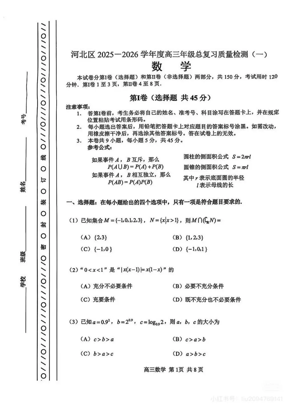 >河北区2026届高三一模试卷