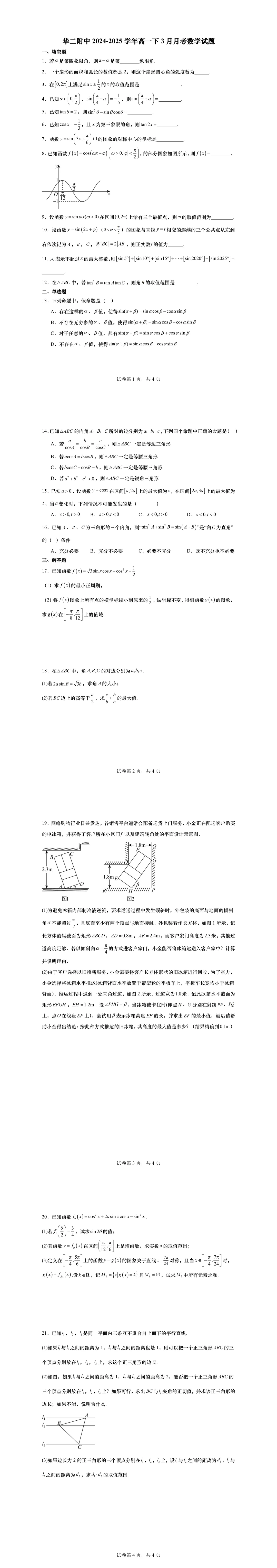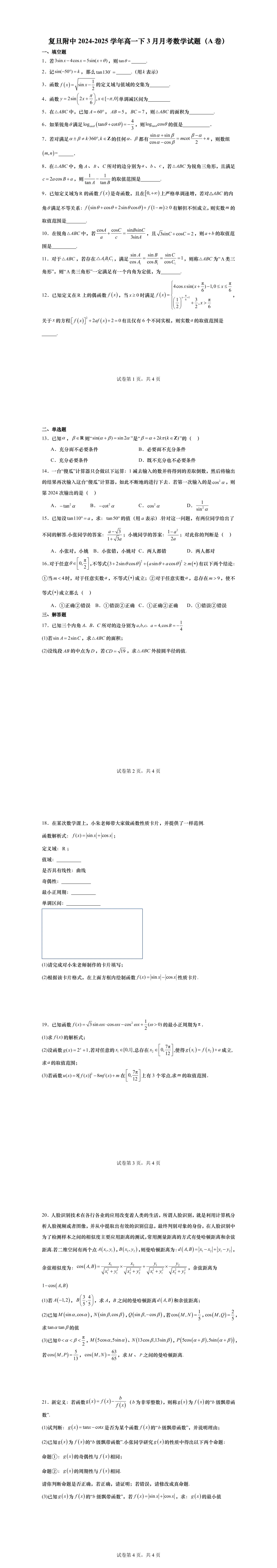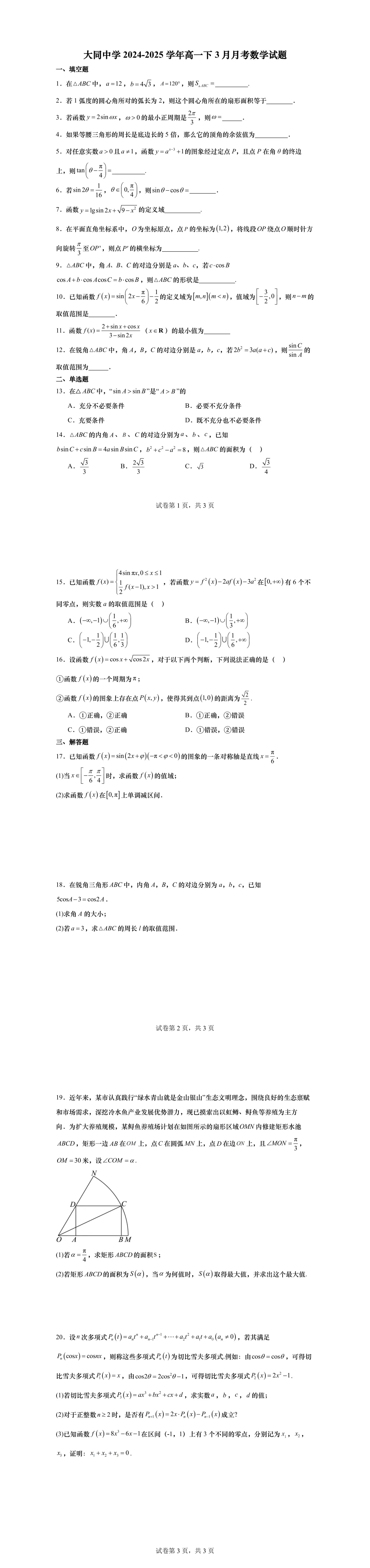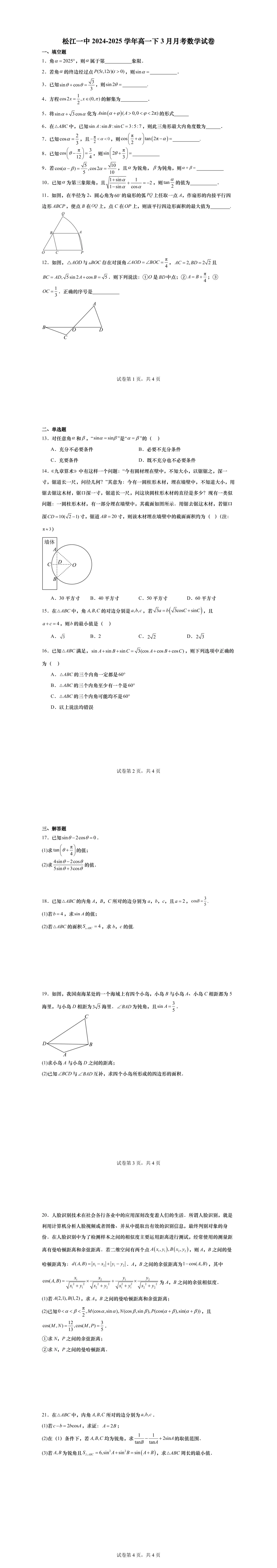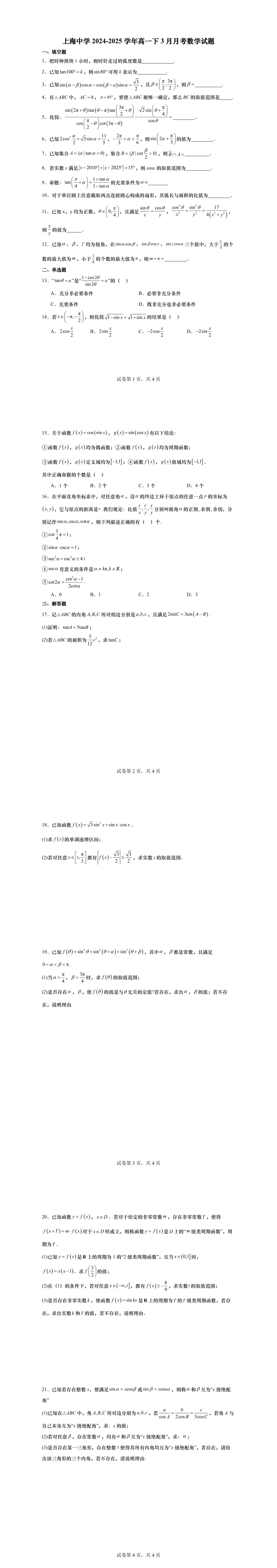 高一下第一次月考,绝大部分学校的考察内容为三角,部分学校会同时考必修一的内容,临近月考,现提供11套25年高一下3月月考名校试卷,