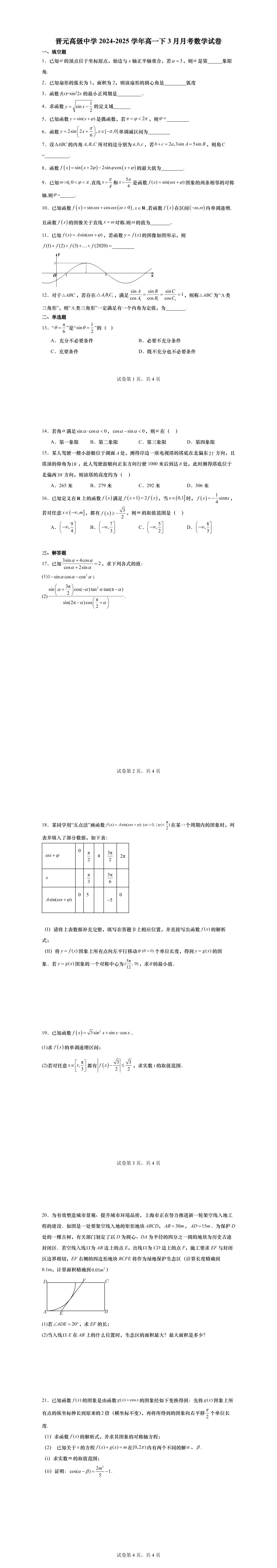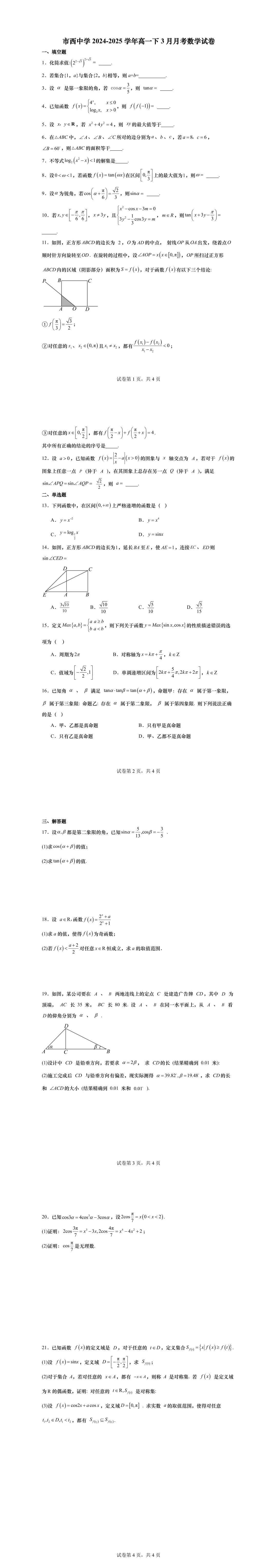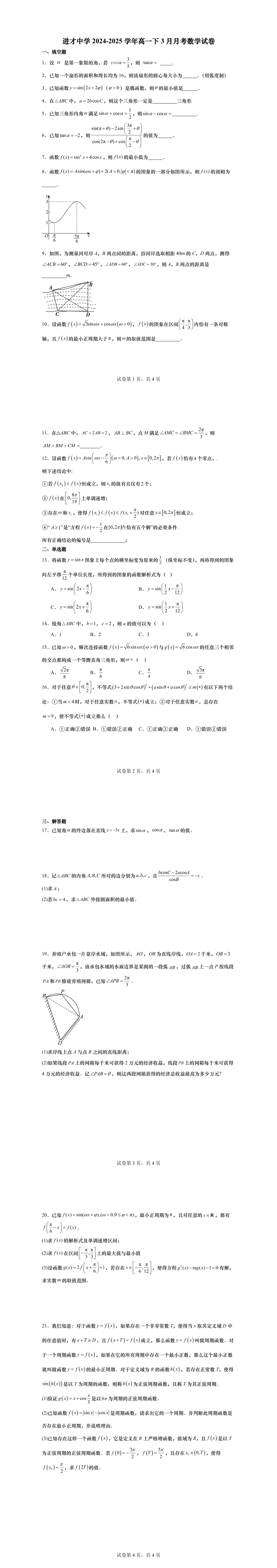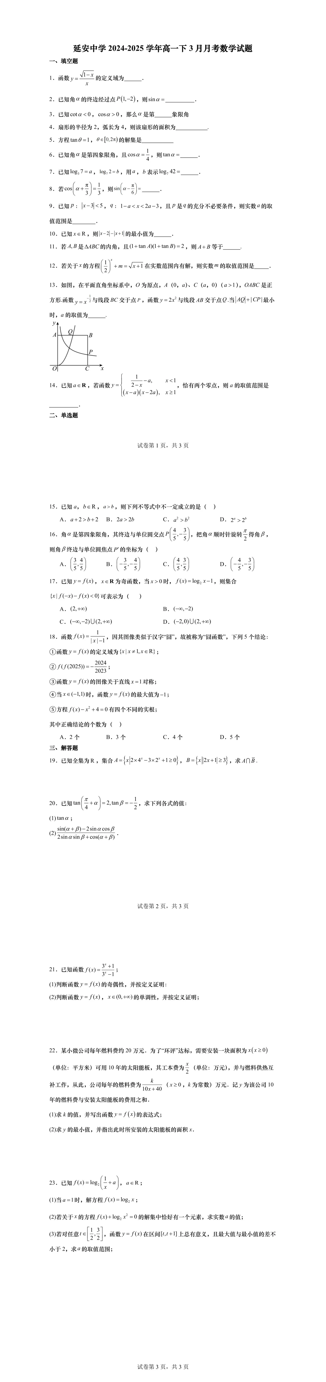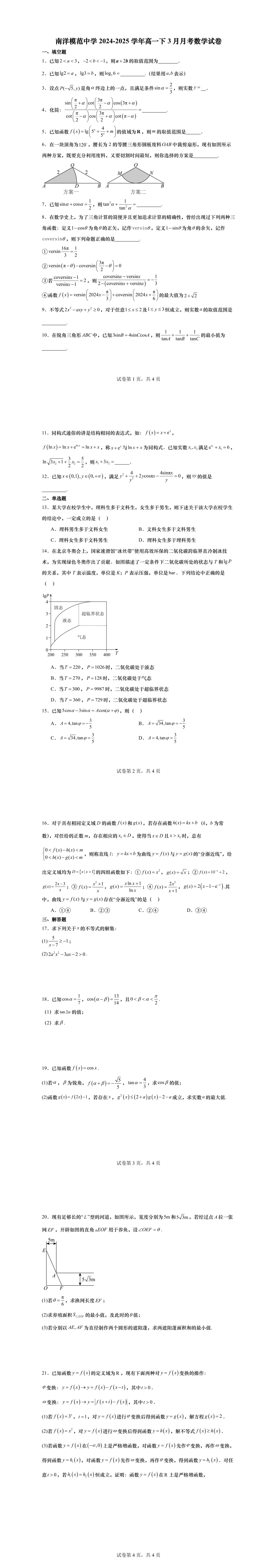 高一下第一次月考,绝大部分学校的考察内容为三角,部分学校会同时考必修一的内容,临近月考,现提供11套25年高一下3月月考名校试卷,