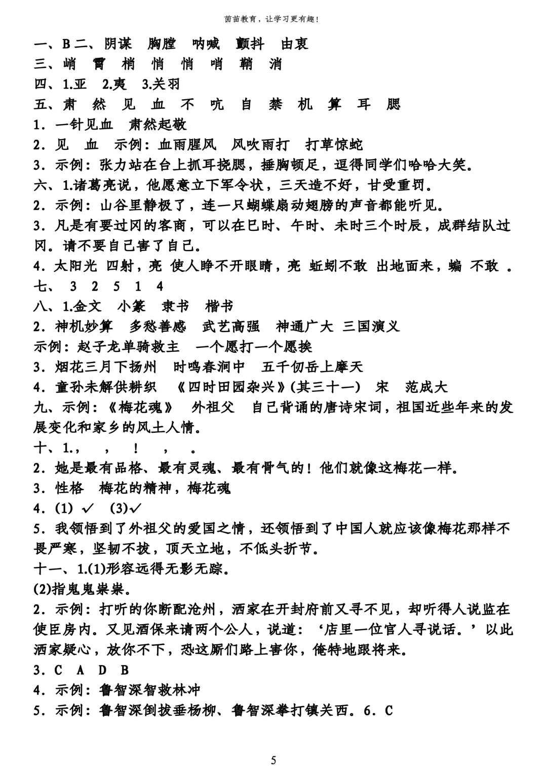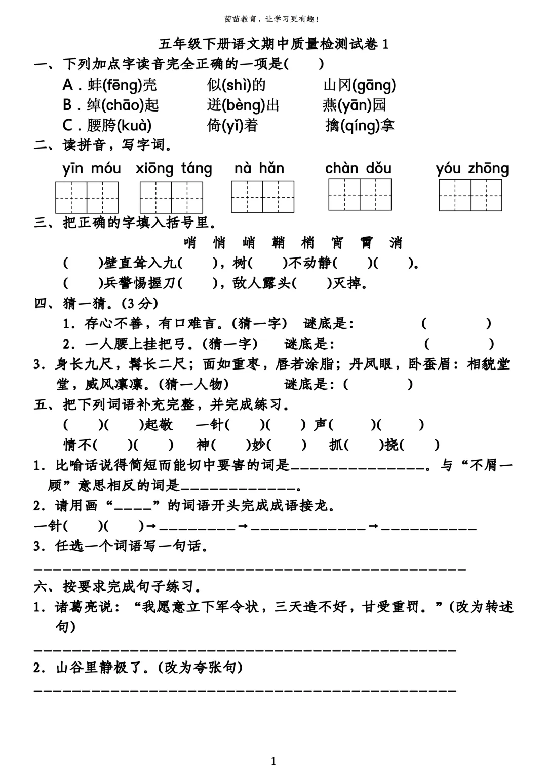 五年级下册语文期中试卷1
