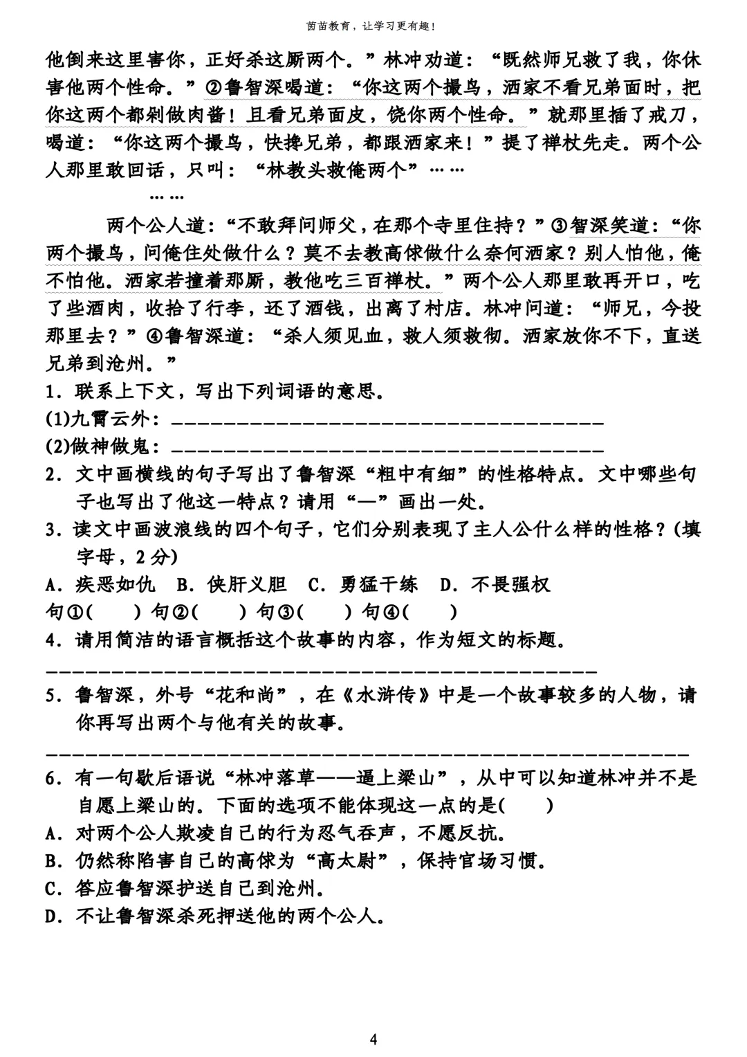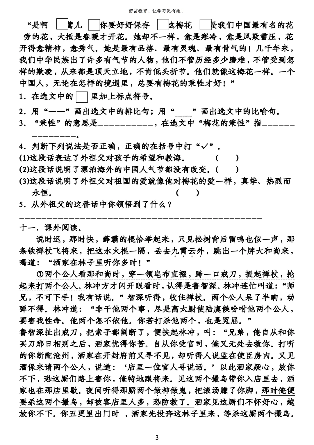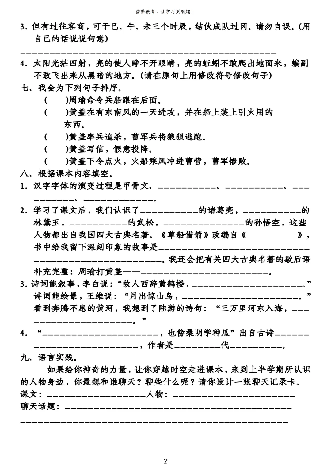 2026年3月沈阳虹桥七年语文期初试卷+答案