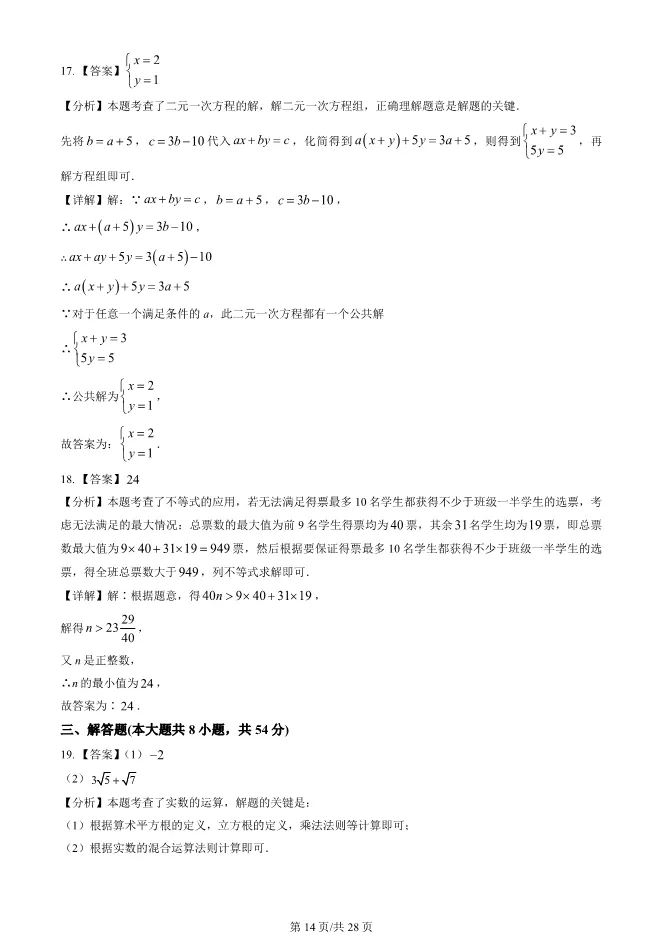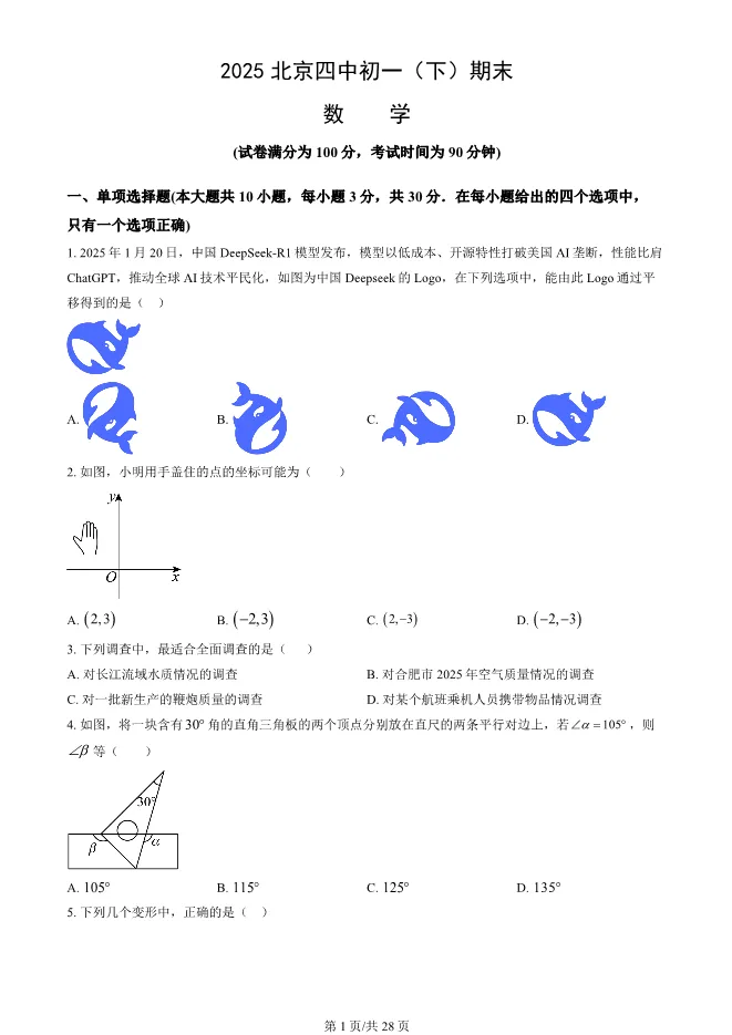 >2025北京四中初一下册期末数学试卷