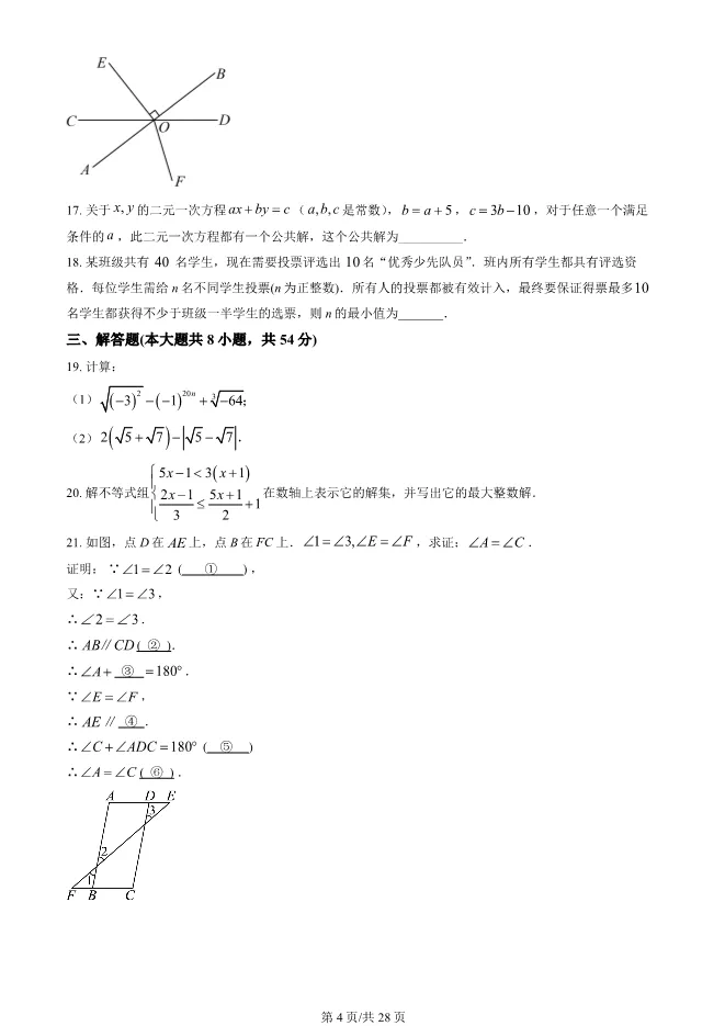 2025北京四中初一下册期末数学试卷