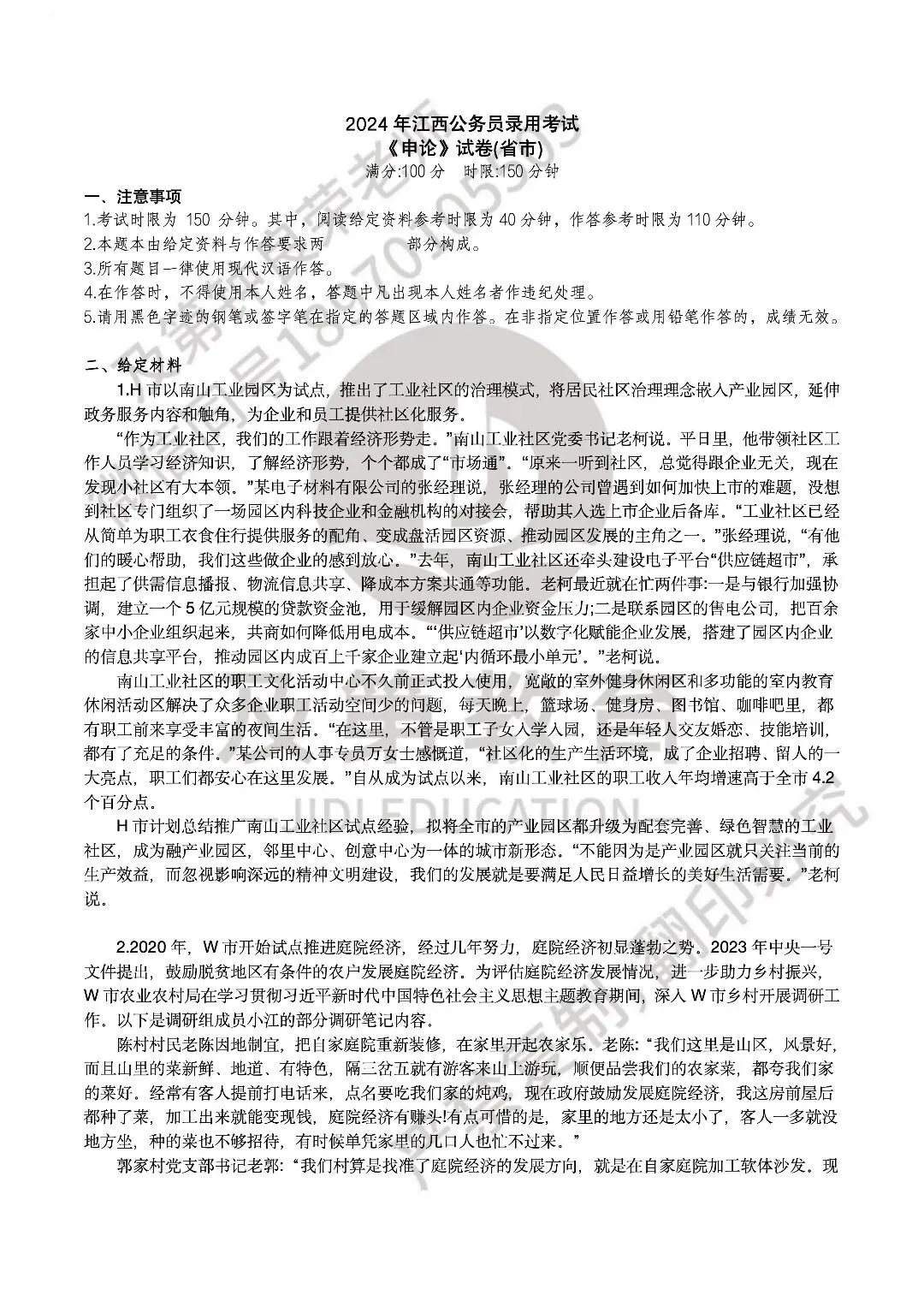 2024年江西公务员录用考试 《申论》试卷(省市)