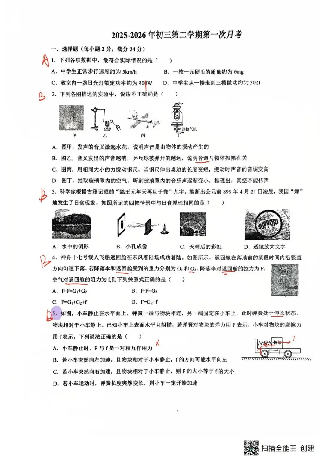 ⬆️【鼓实集团】刚考的26年零模的试卷和答案