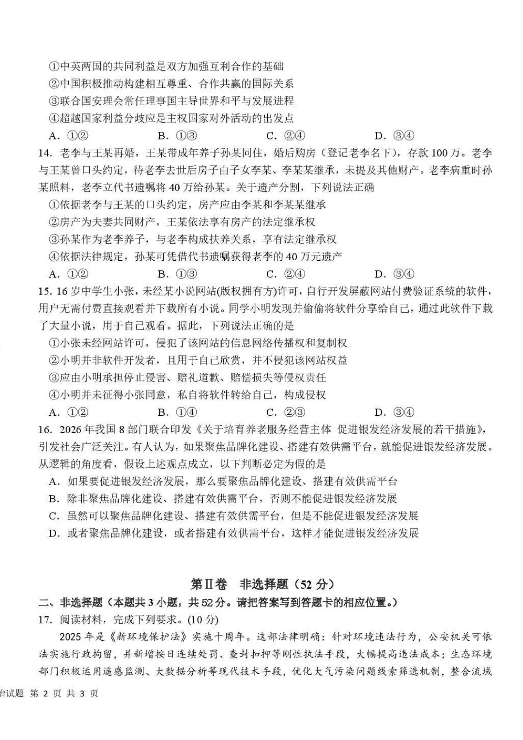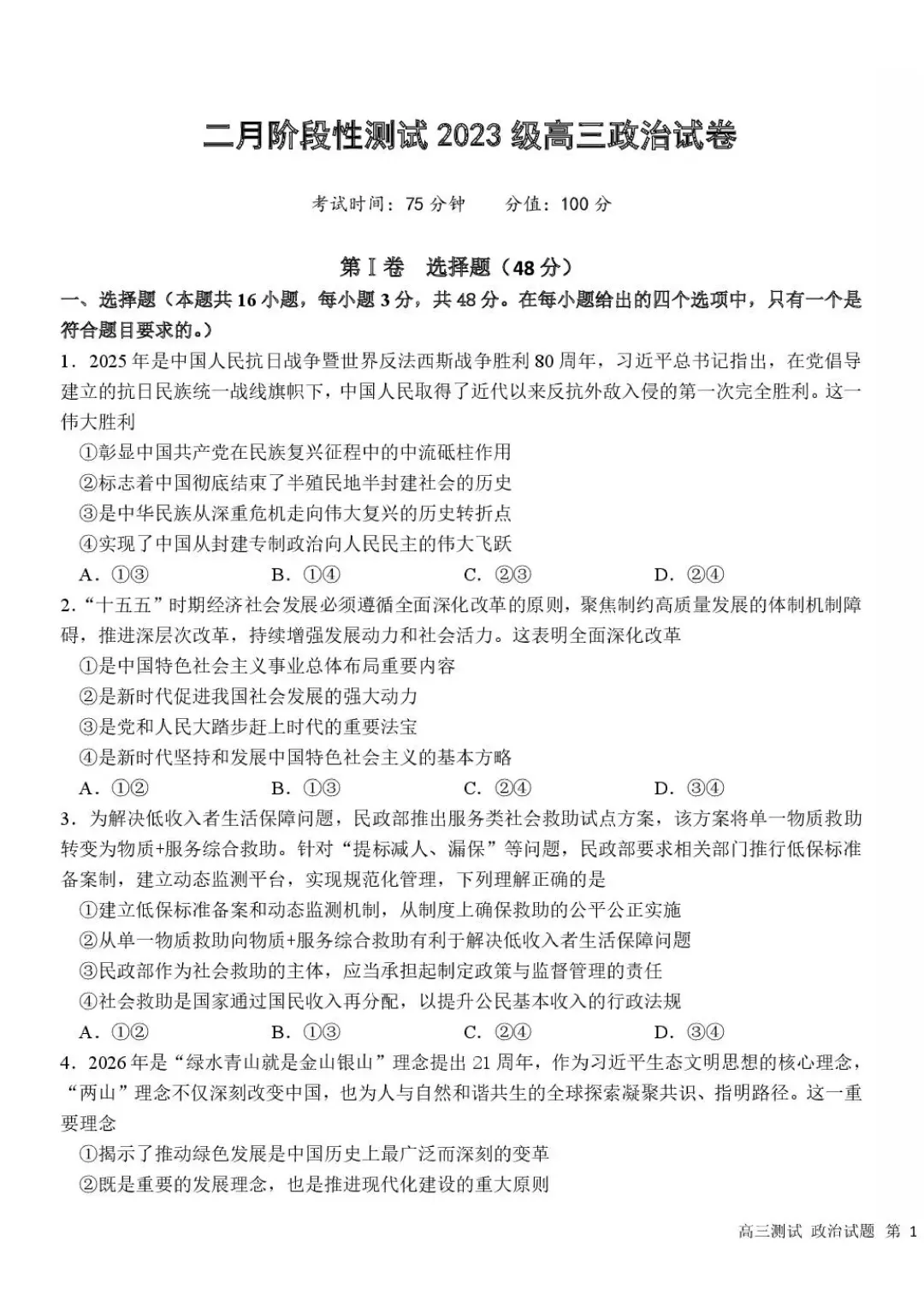 >哈一中、哈六中高三下2月零模考试卷+答案【2025-2026】【政治】【高清电子版】
