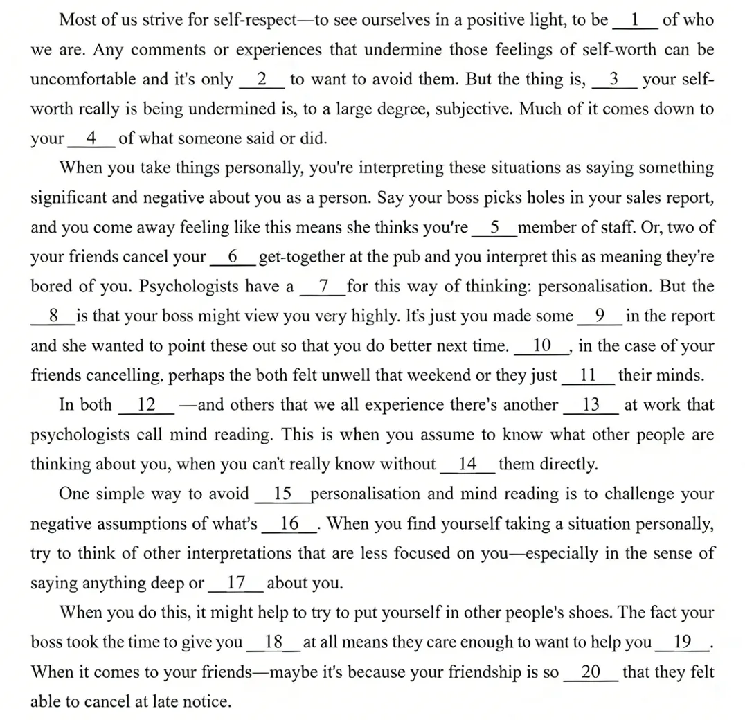 15.take sth personally - 因认为某人的言行针对自己而不快,往心里去
