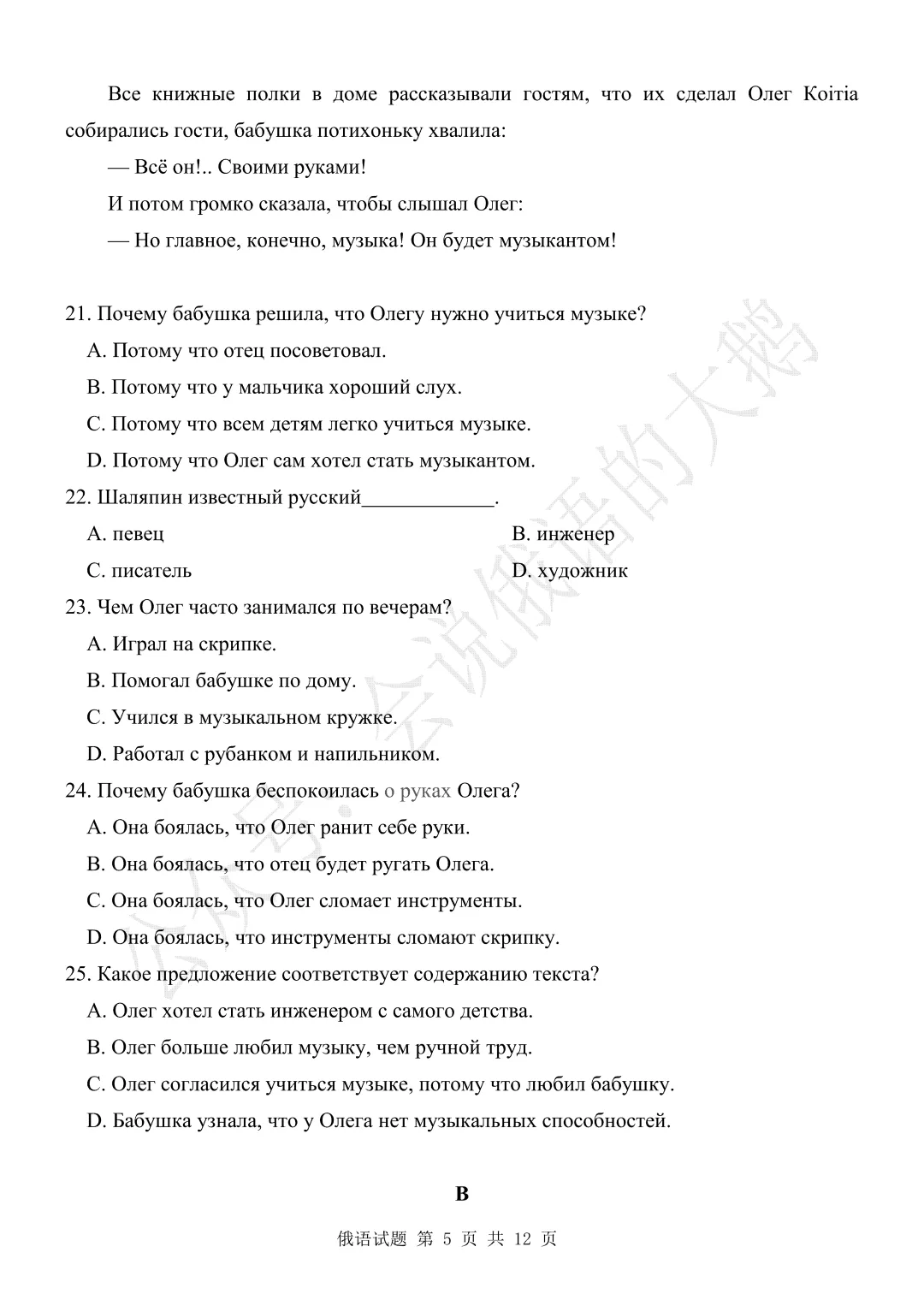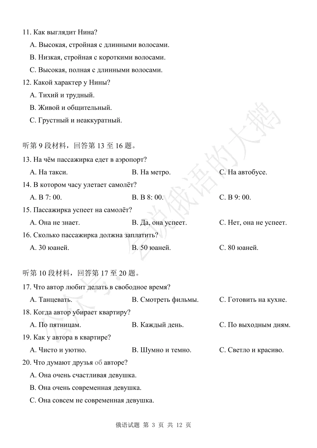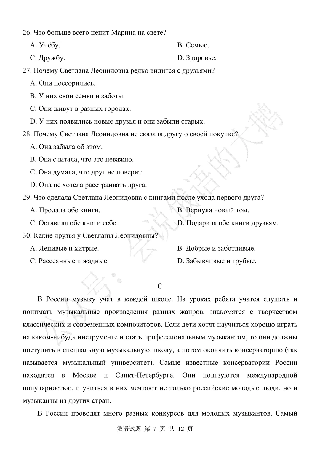 【高三俄语试卷】2026年3月 江苏二模
