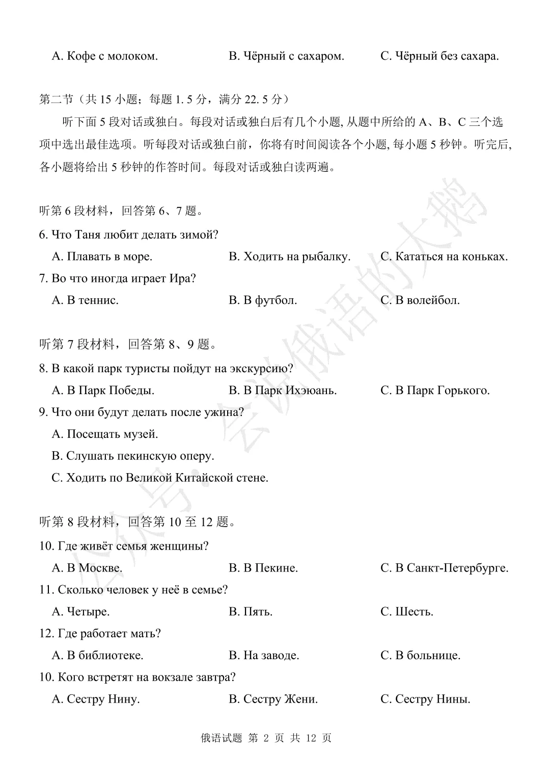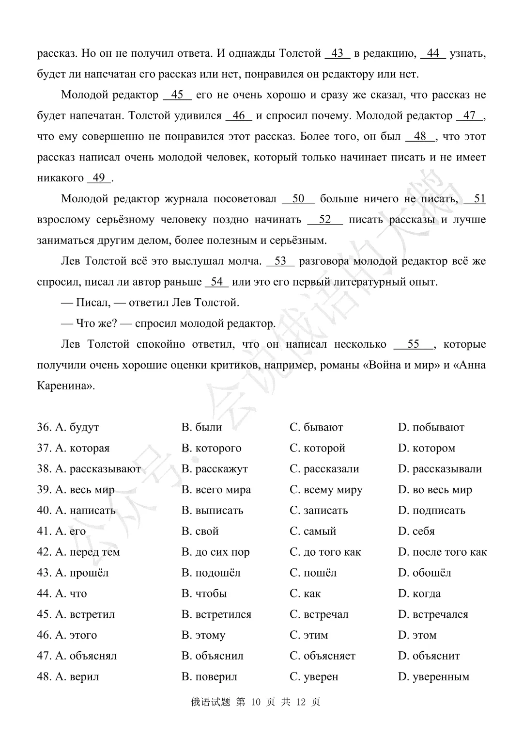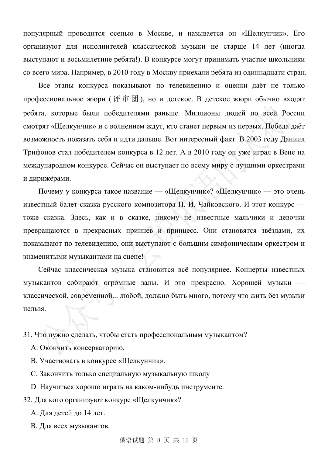 【高三俄语试卷】2026年3月 江苏二模