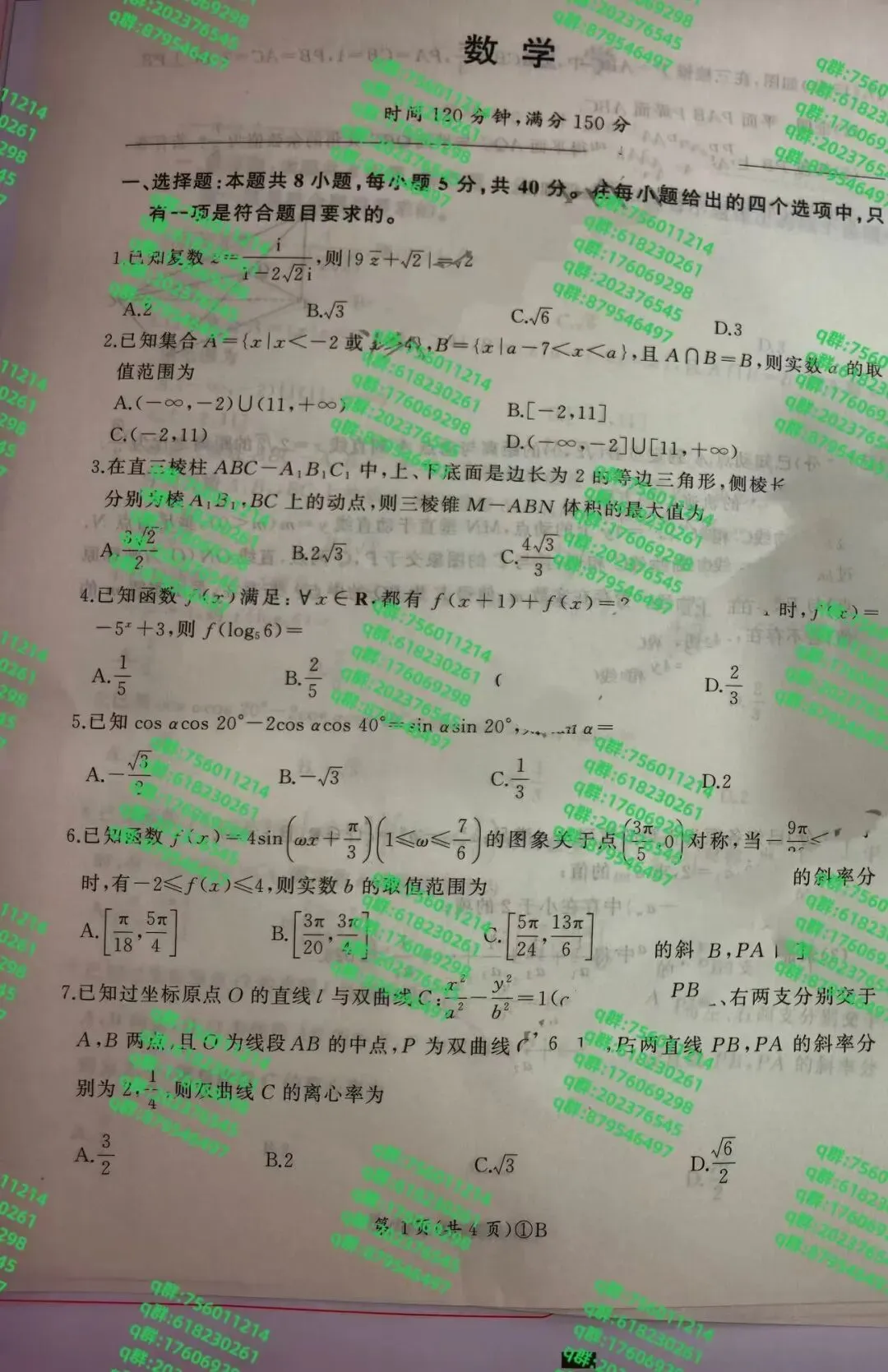 刚考完!师大附中集团中考一模真题试卷