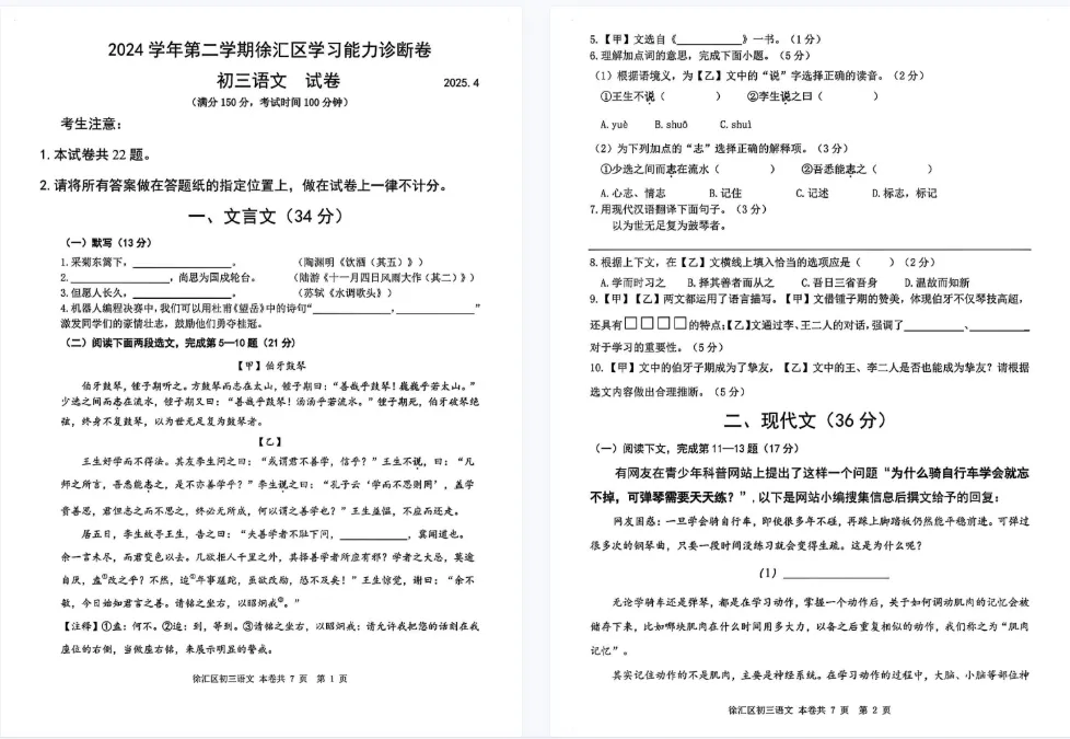 今天,我们特意为大家整理了 2025年上海徐汇区初三全科二模试卷合集(PDF高清版,可直接下载打印),涵盖所有必考科目。
