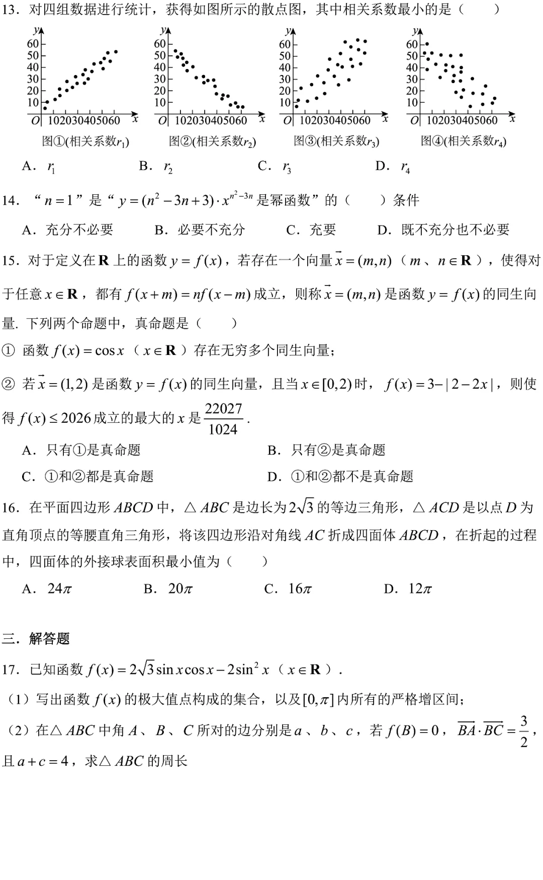>2026届高三第二学期3月月考数学试卷2026.3