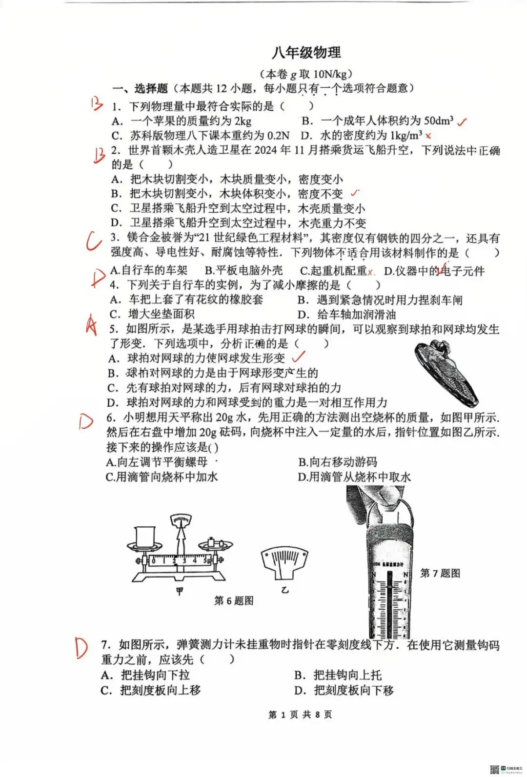 ⬆️【一中】刚考的26春八下第一次月考的试卷和答案