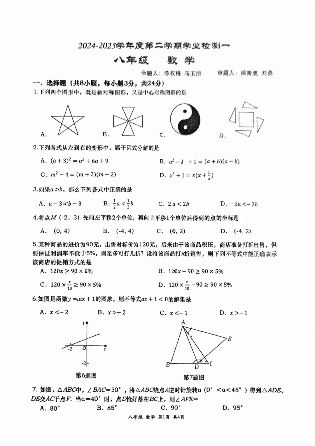 最新!26春八下一中3月月考物理试卷+钢铁手写答案!