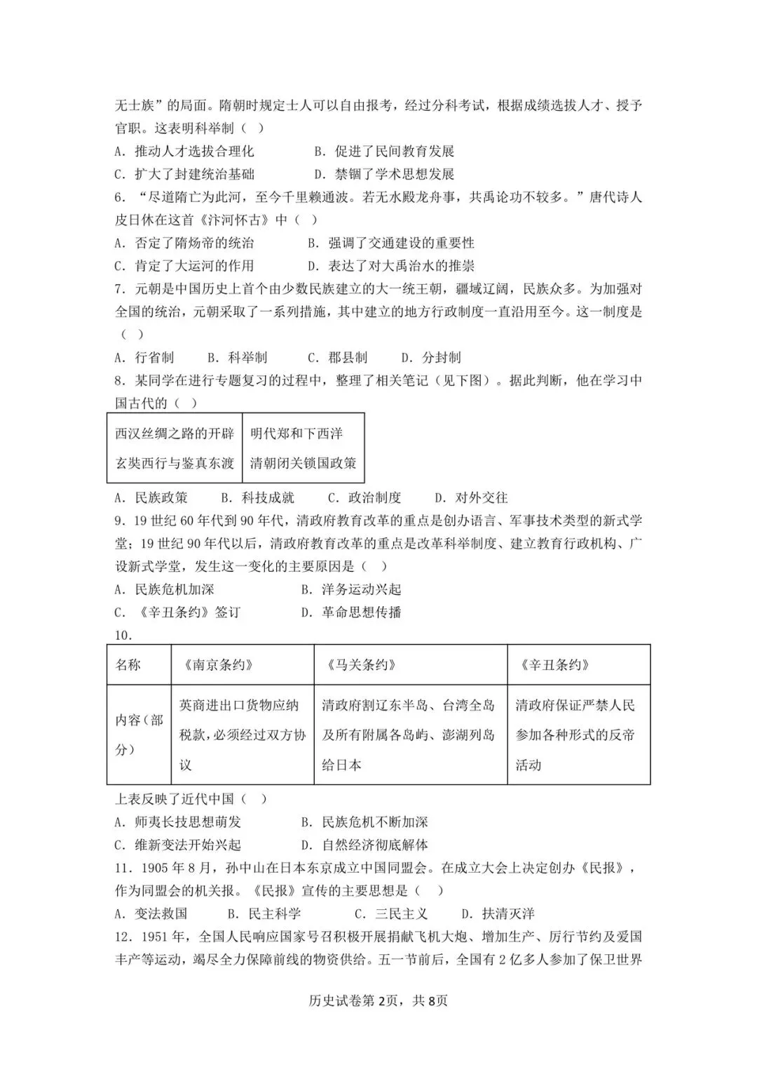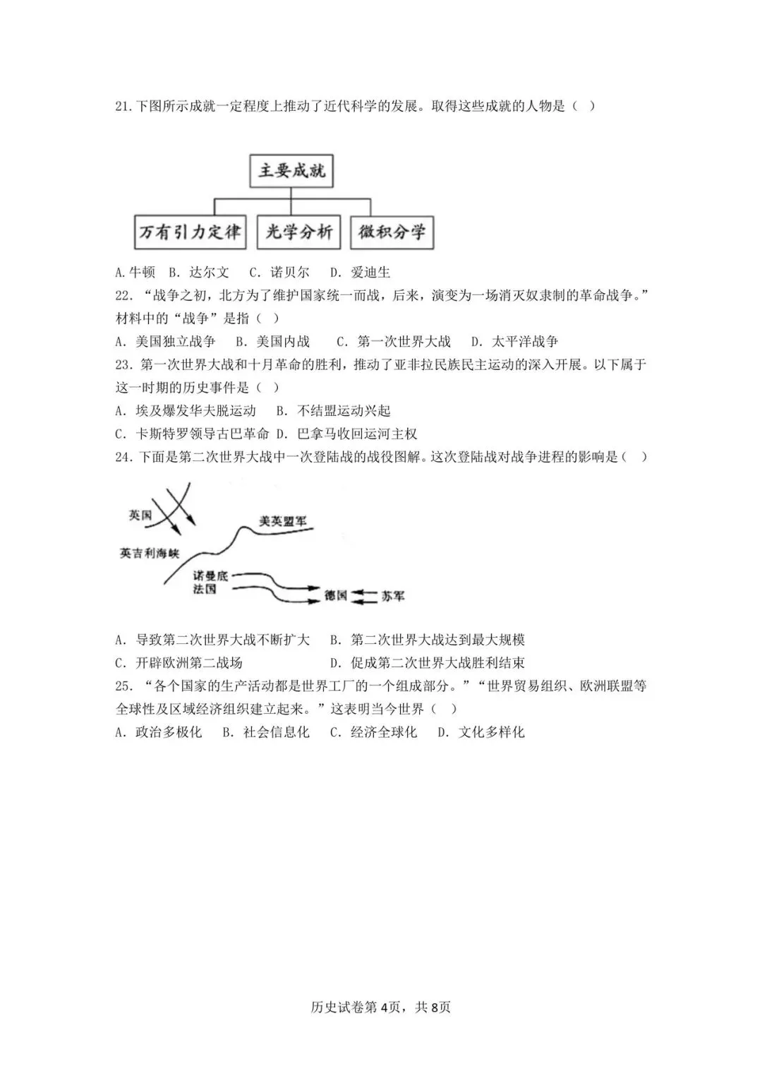 民大附中2025年4月期中考试历史试卷
