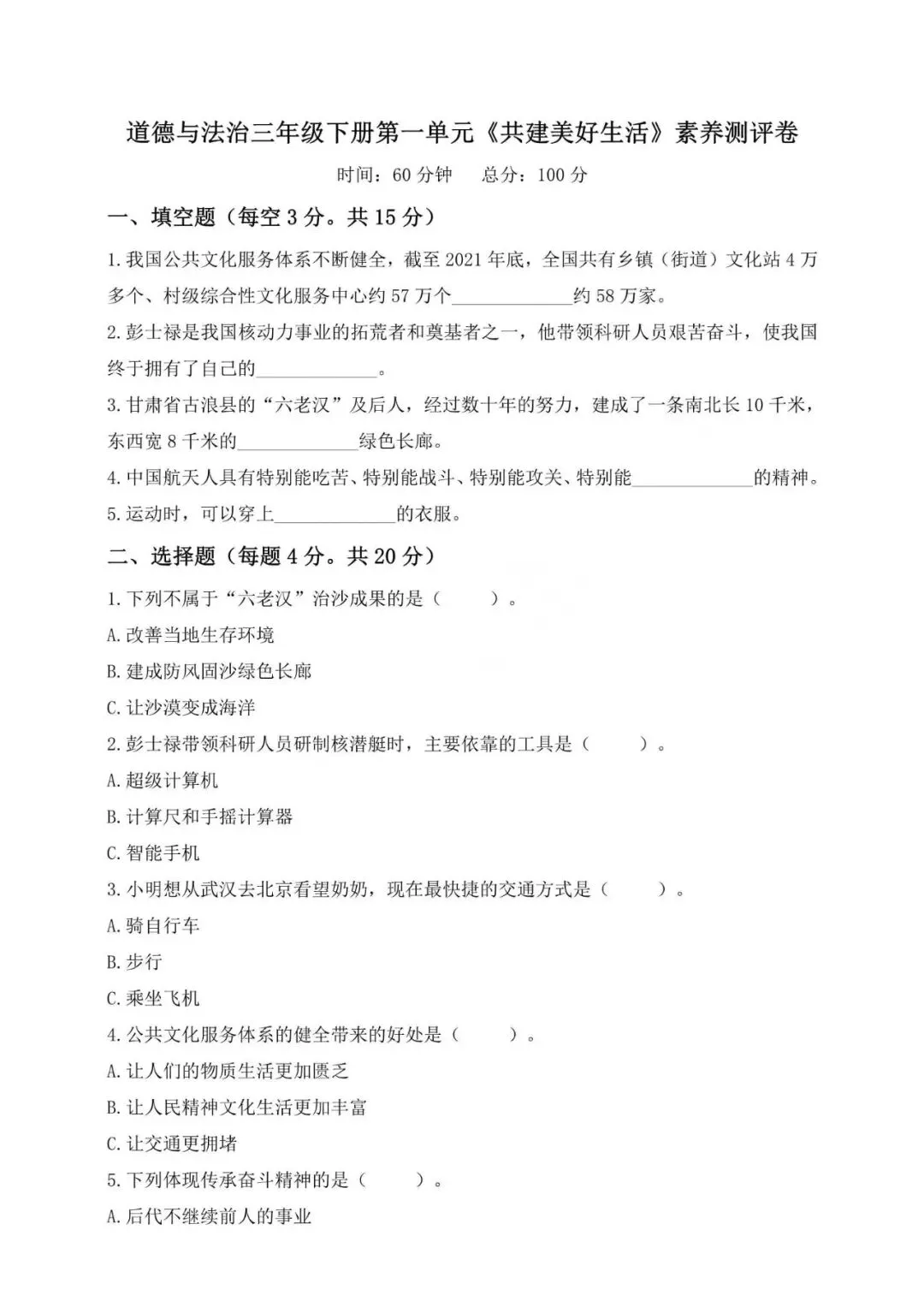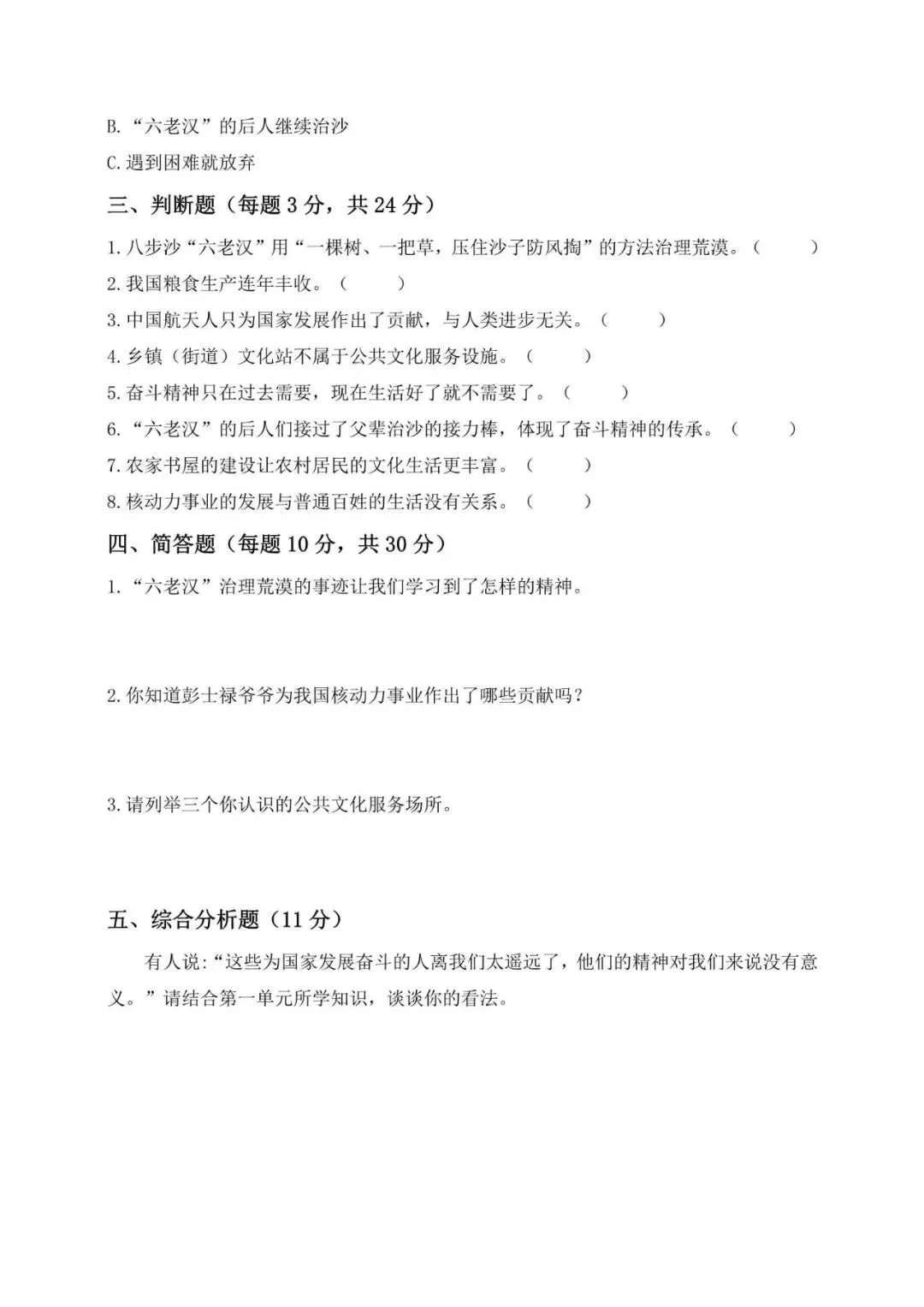 >26春3-6年级 道德与法治知识点+试卷