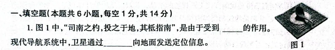 【参考答案】第一空:地磁场(或“地磁力”)第二空:电磁波
